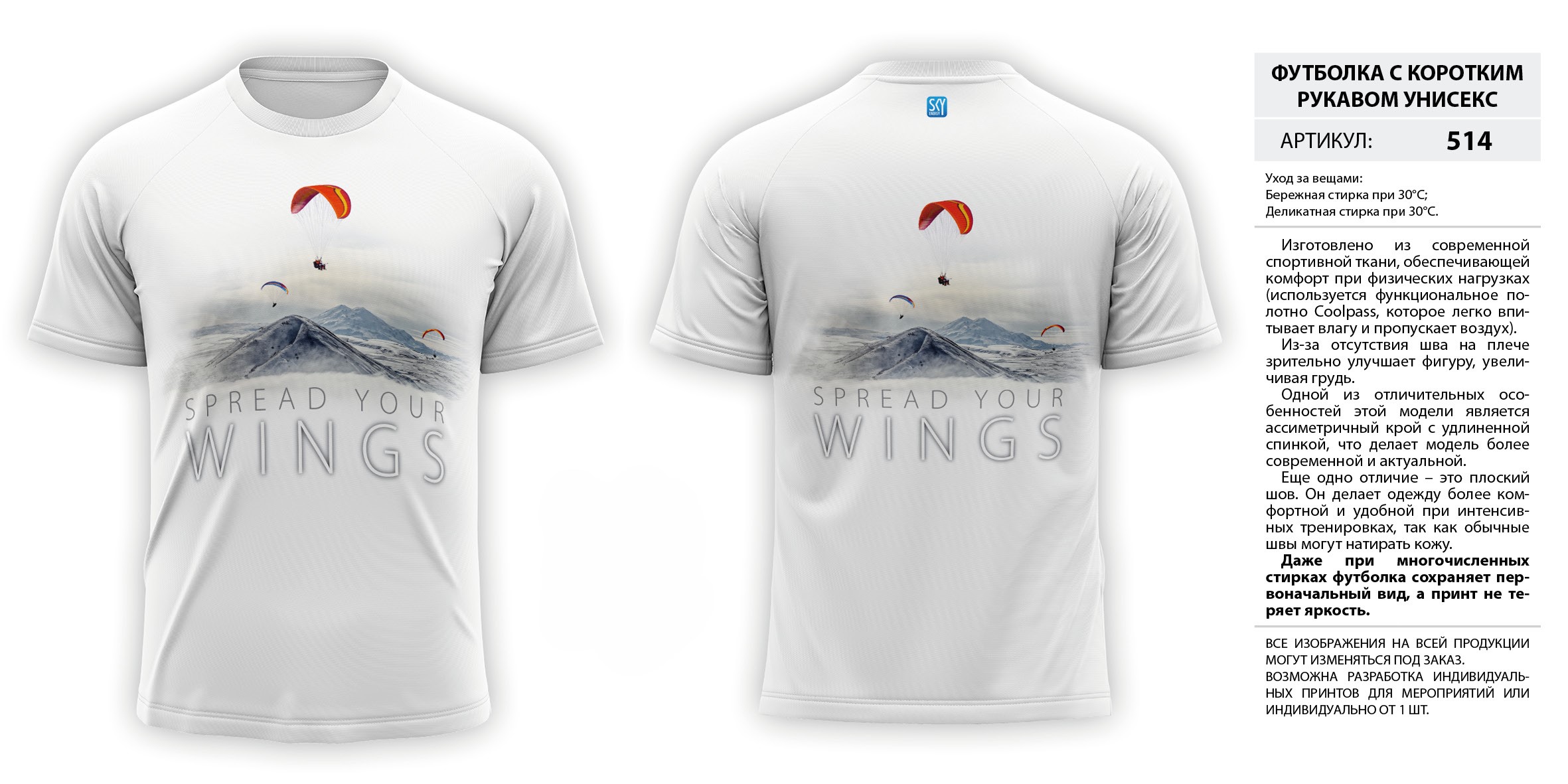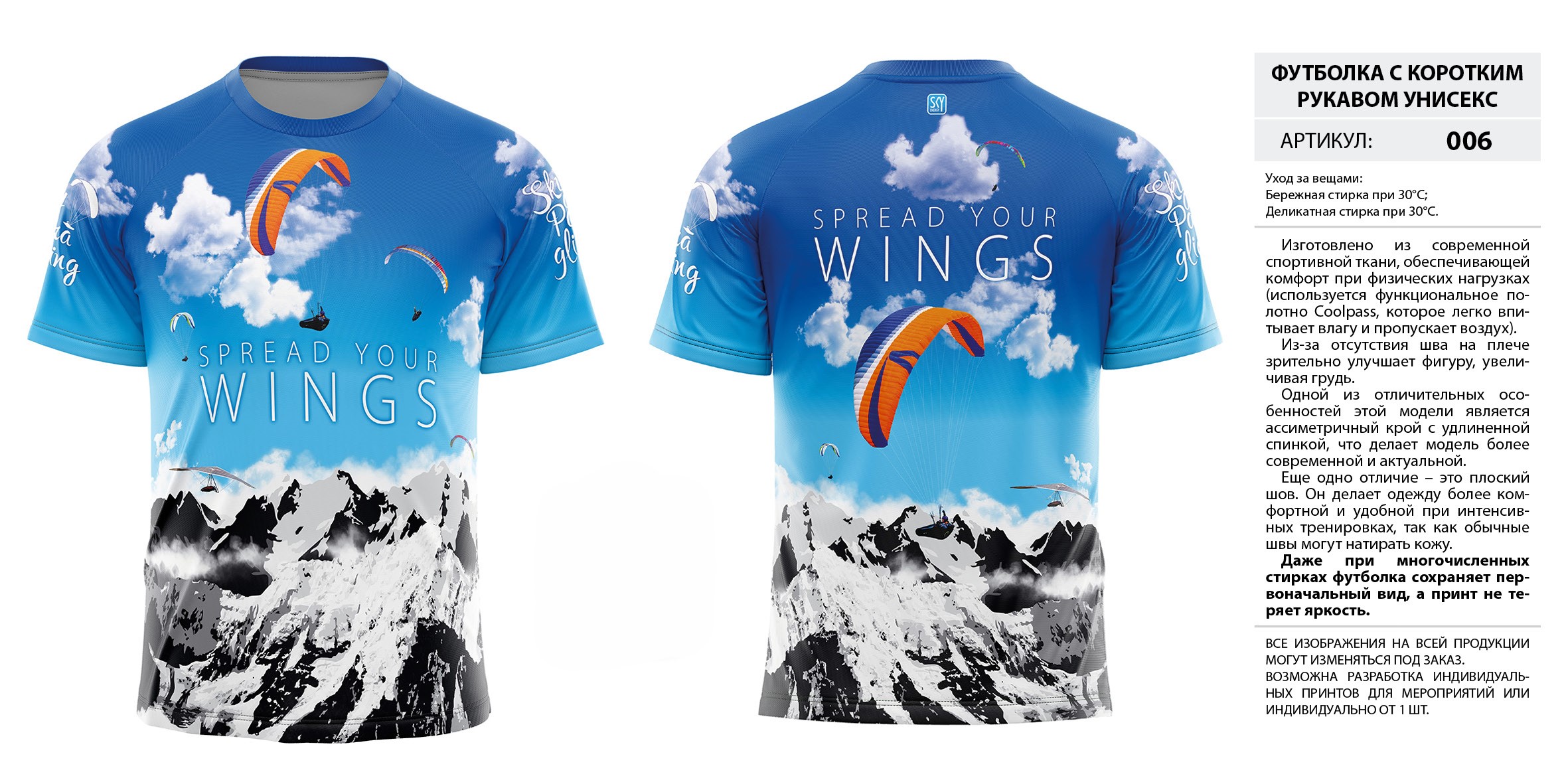 Отводит влагу, быстро сохнет, ощущается как вторая кожа, не стесняет движения, поддерживает оптимальную температуру, растягивается на 300%. Принт не линяет и не выстирывается. Возможно заменить крылья на изображении на любые, которые пришлёте. Все принты представленные здесь на странице возможно перенести на лайкру.