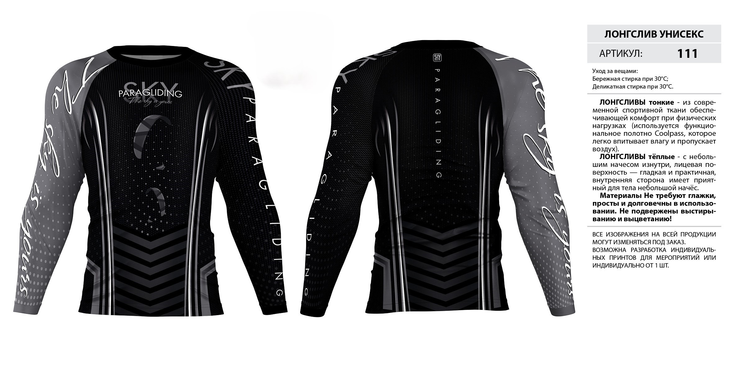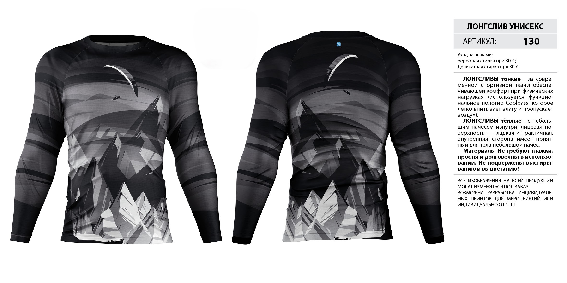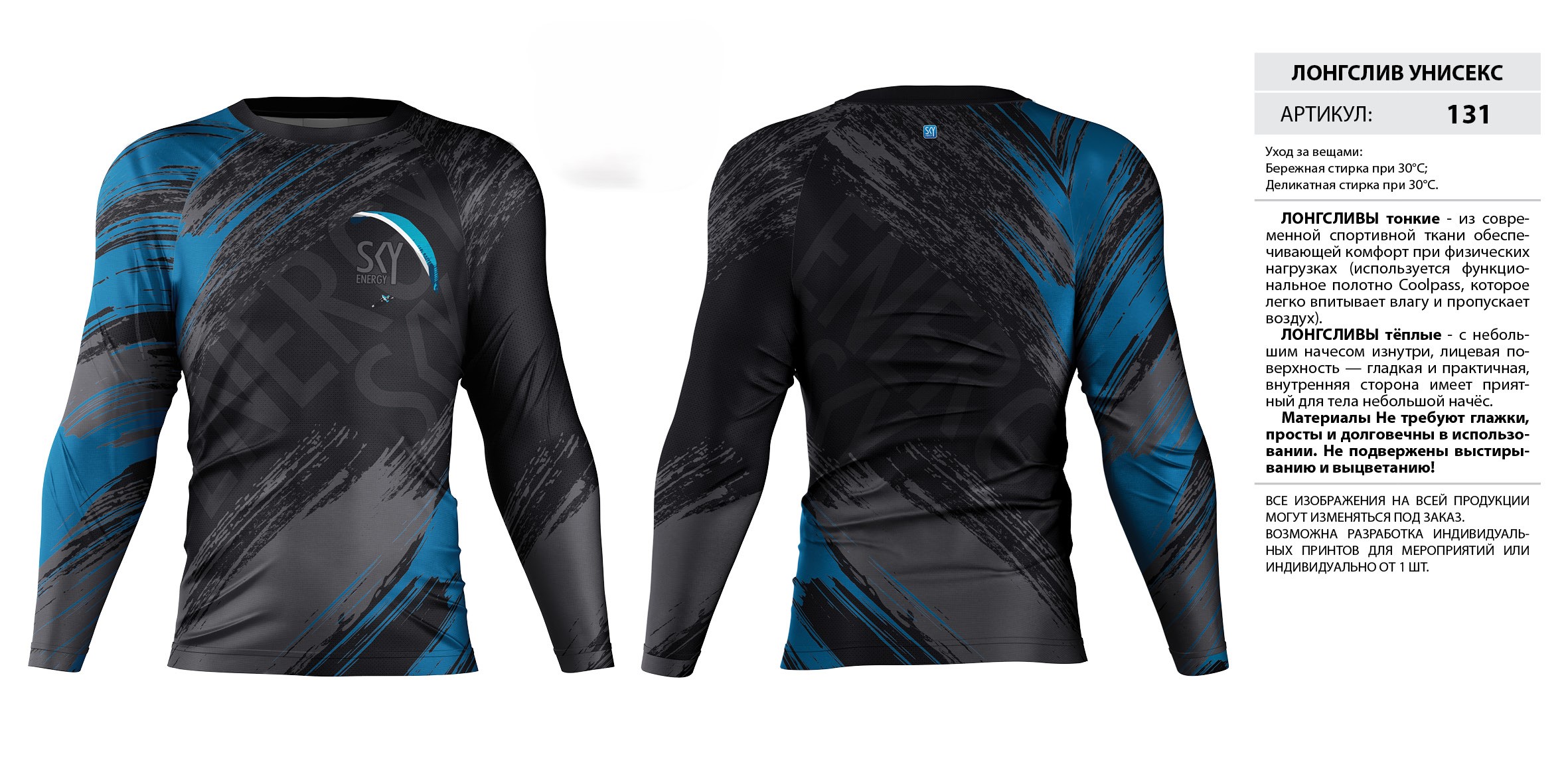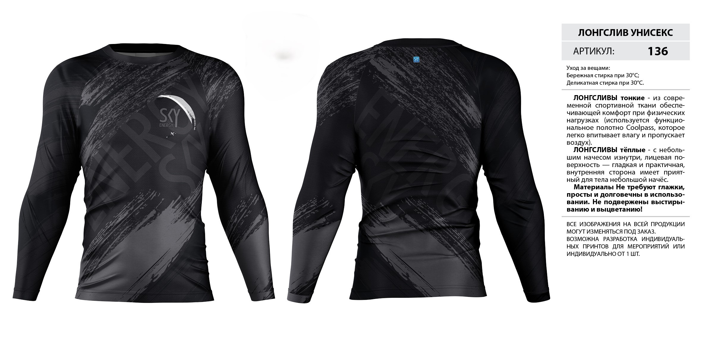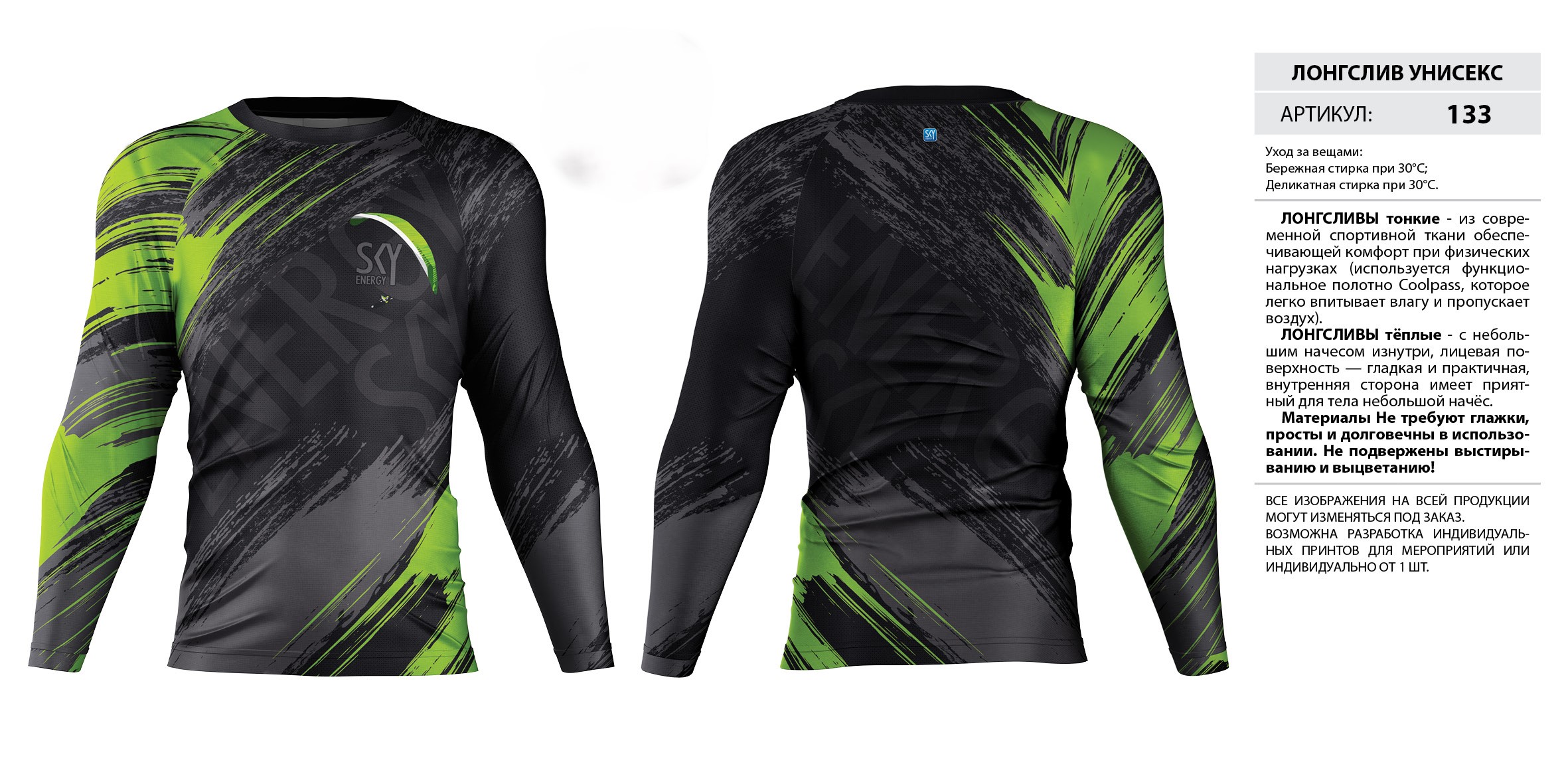 ЛОНГСЛИВЫ тонкие — из современной спортивной ткани обеспечивающей комфорт при физических нагрузках (используется функциональное полотно Coolpass, которое легко впитывает влагу и пропускает воздух).