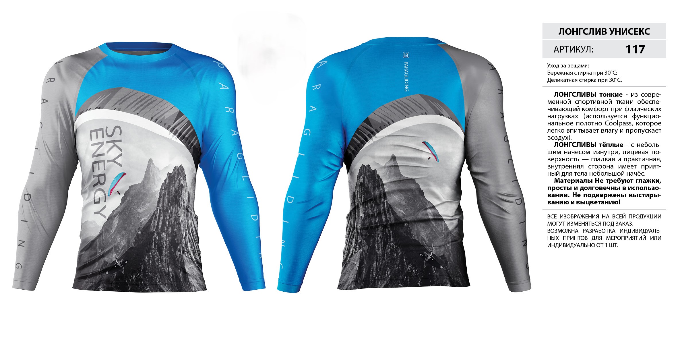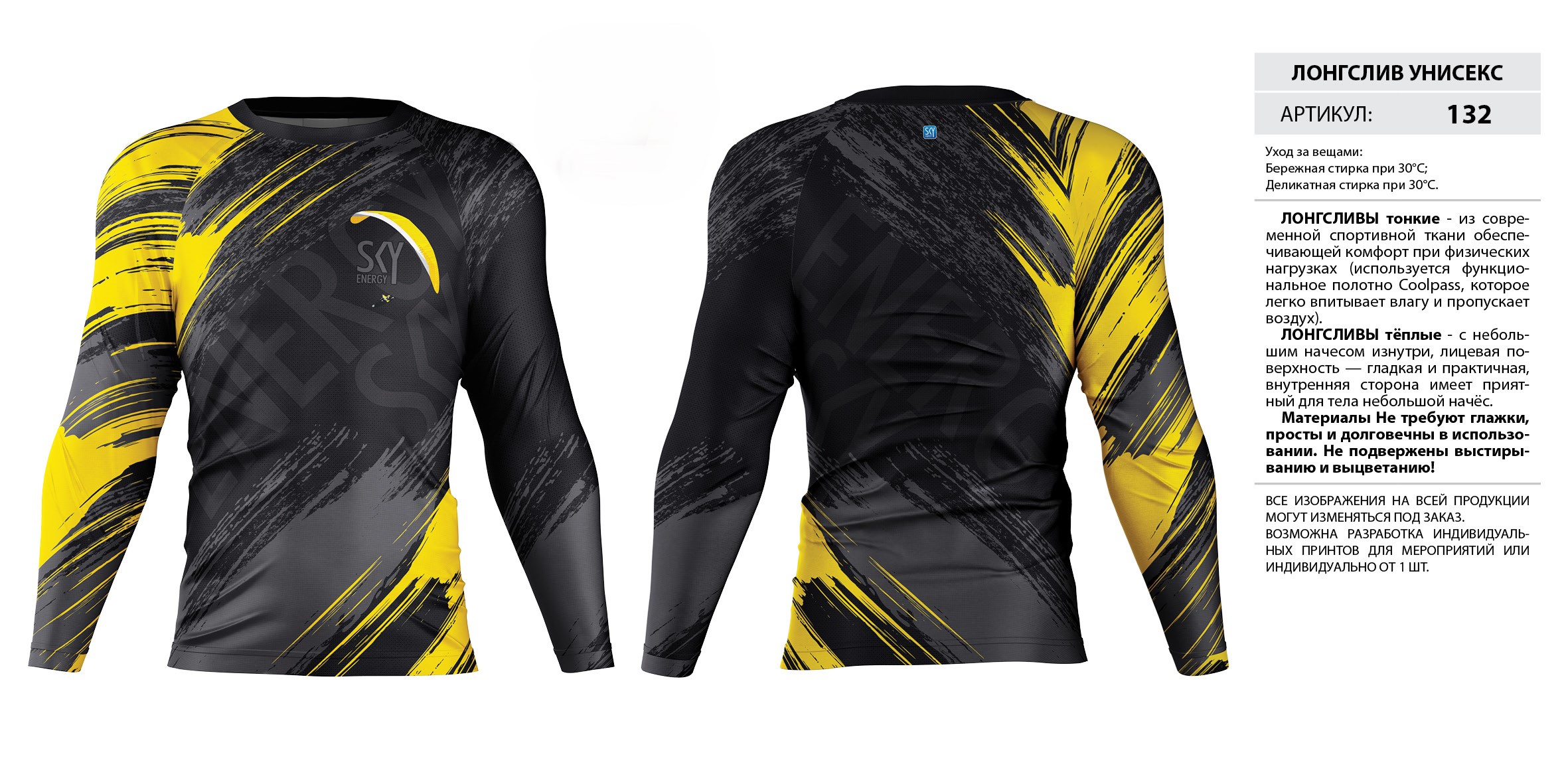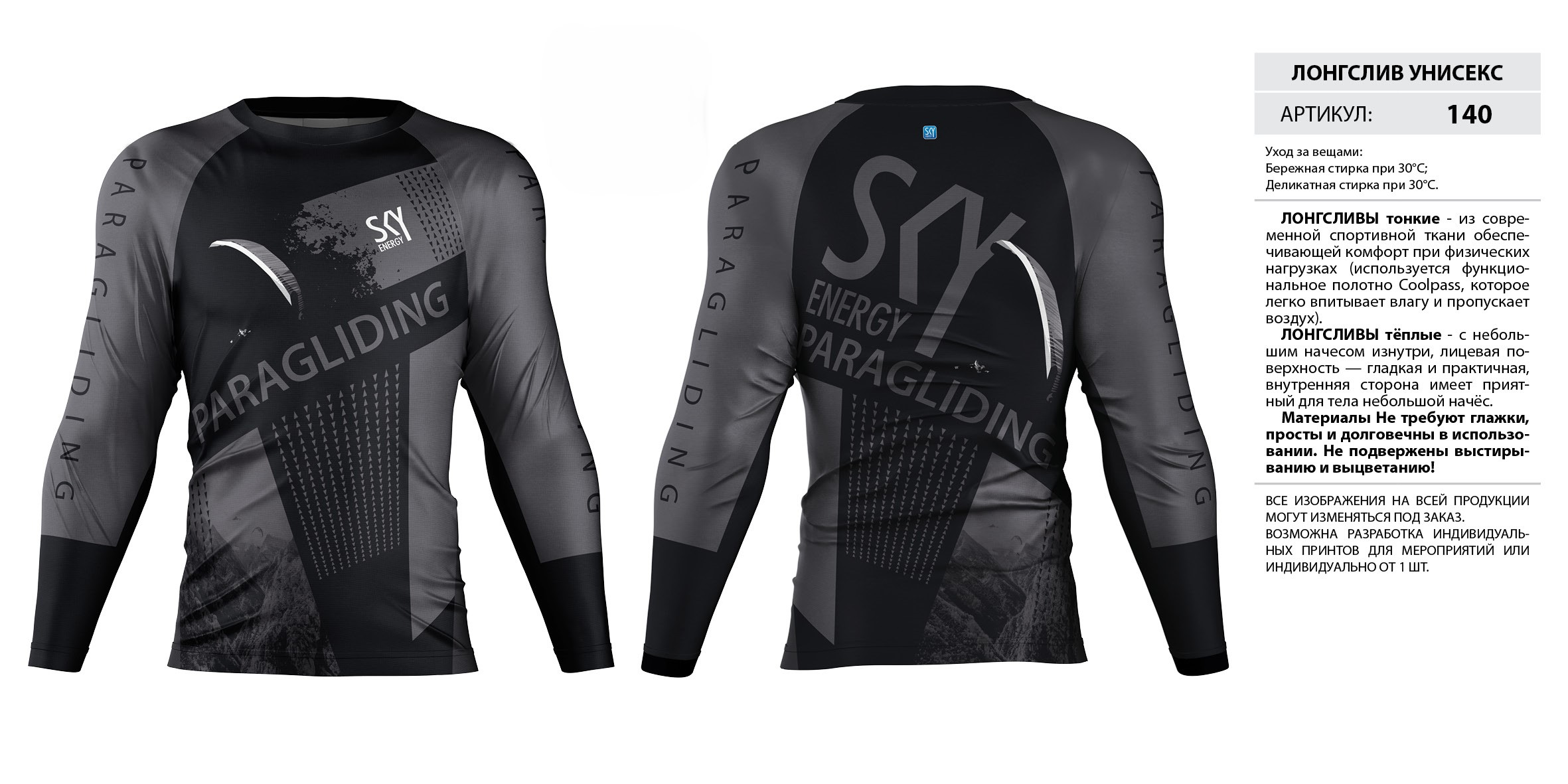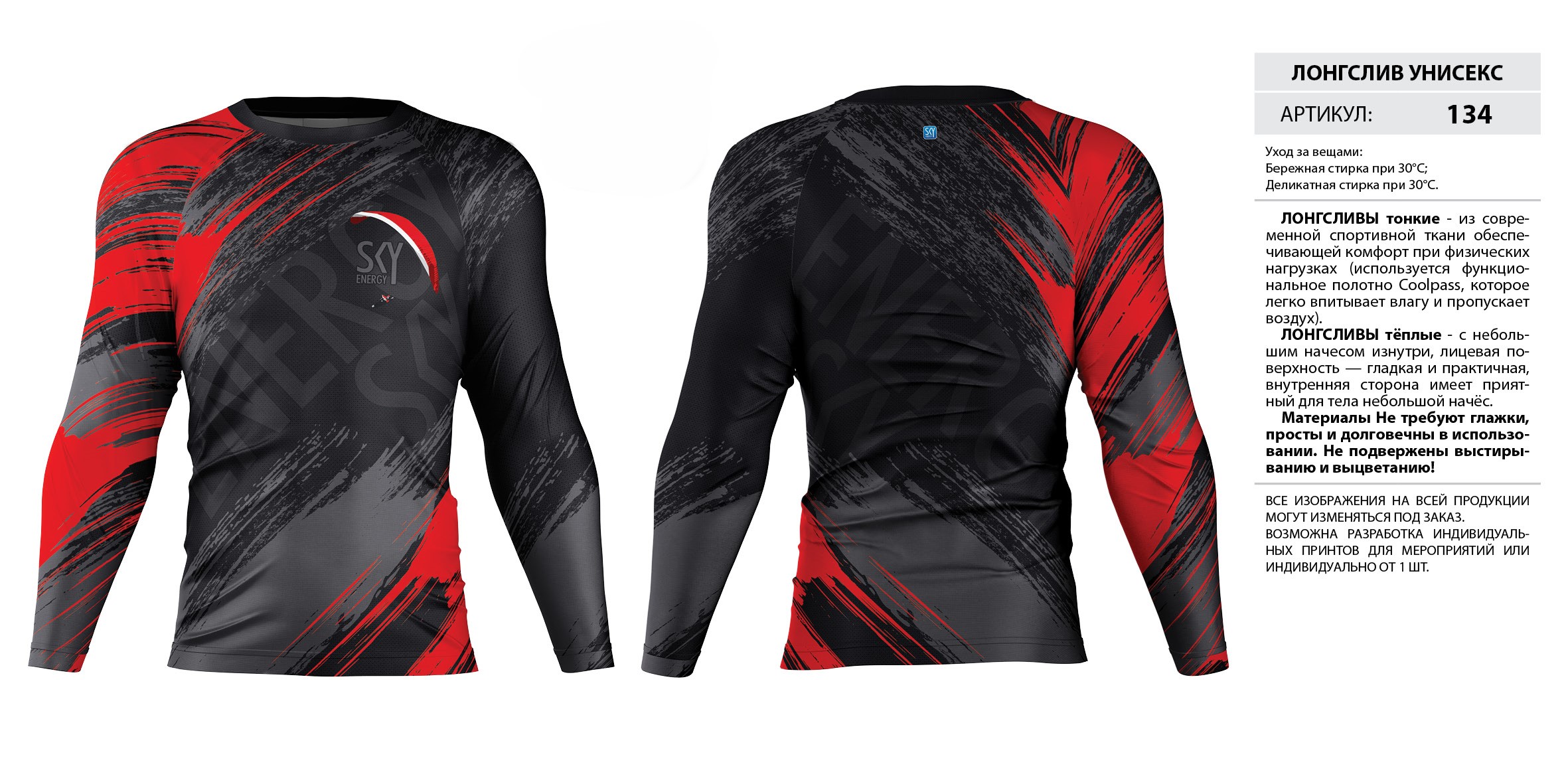 ЛОНГСЛИВЫ тонкие — из современной спортивной ткани обеспечивающей комфорт при физических нагрузках (используется функциональное полотно Coolpass, которое легко впитывает влагу и пропускает воздух).