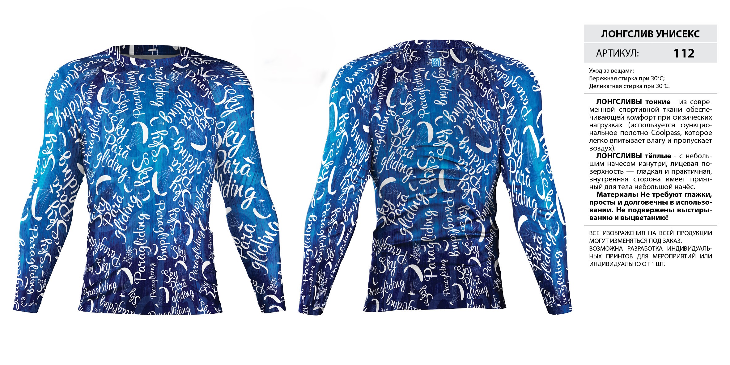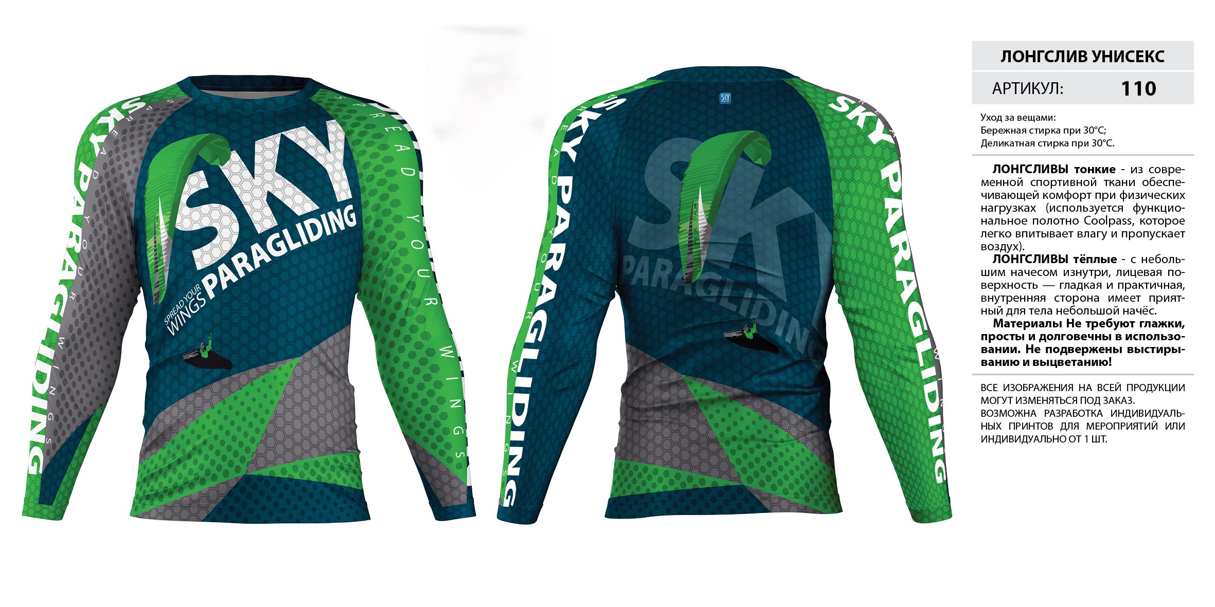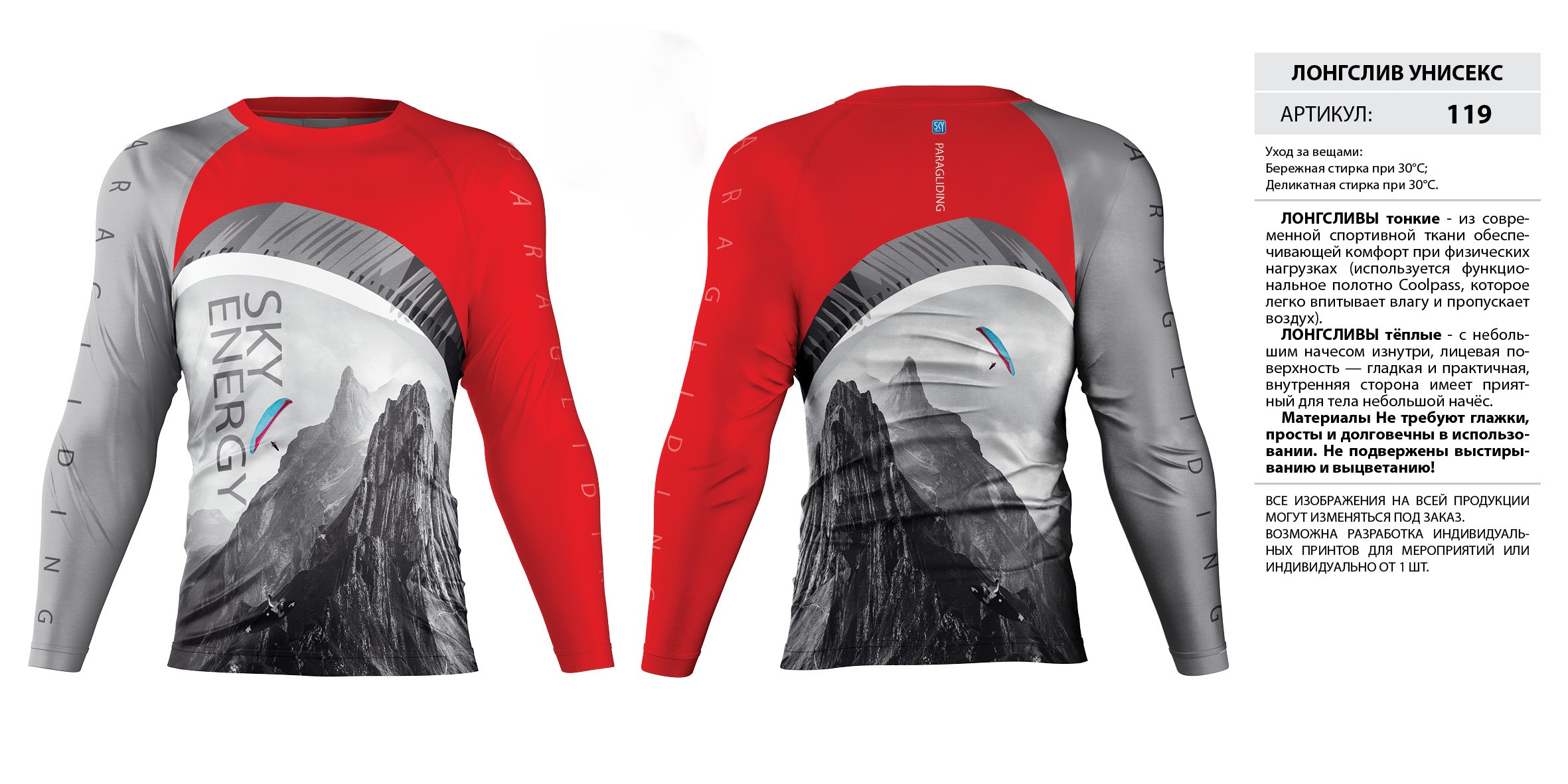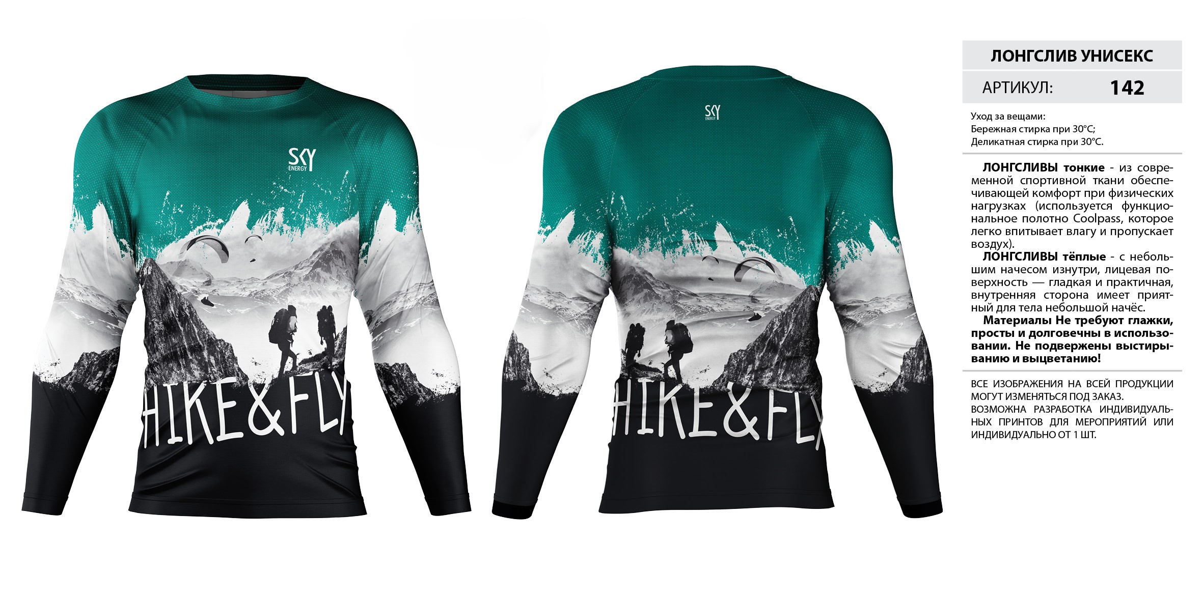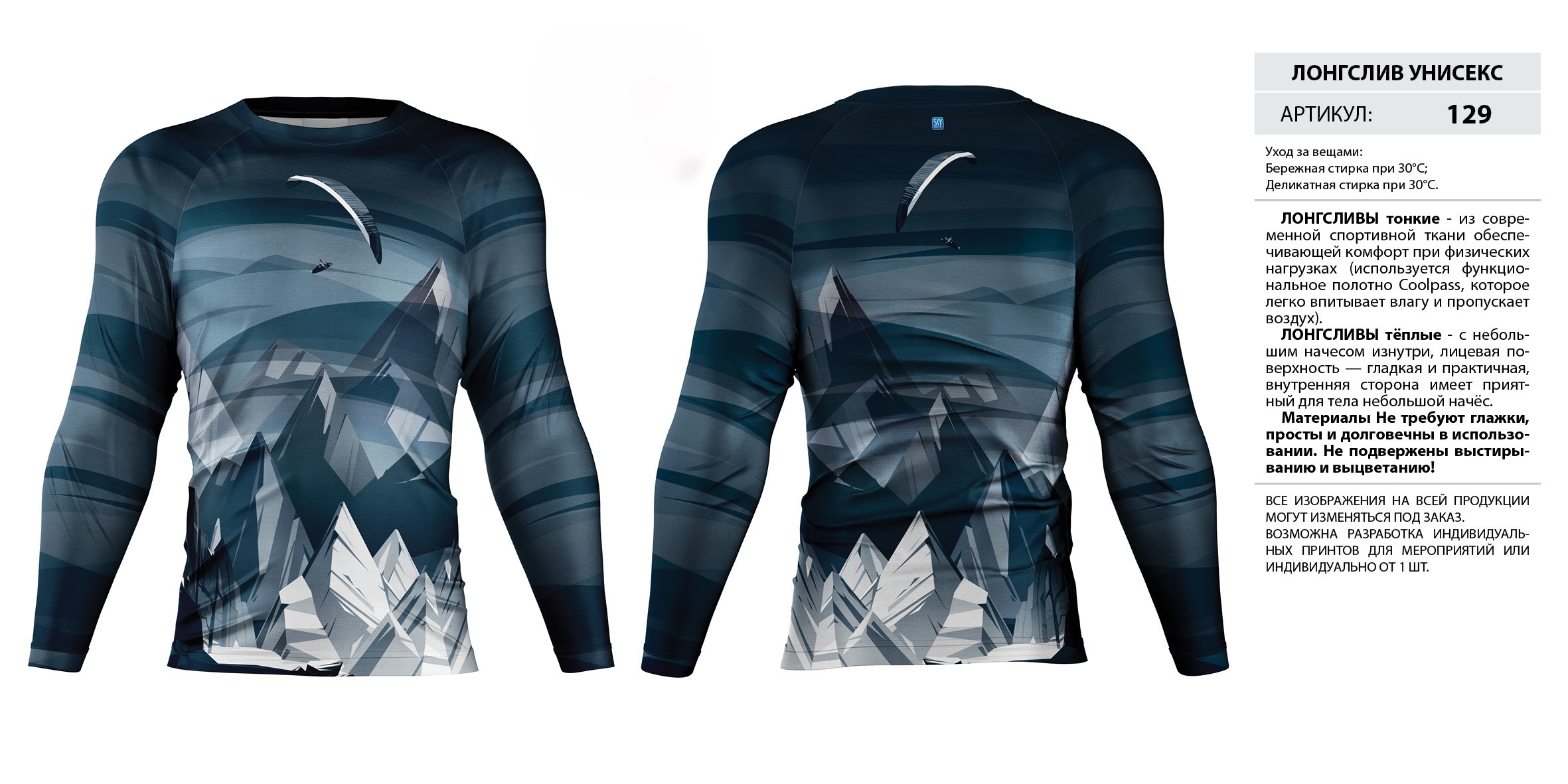 ЛОНГСЛИВЫ тонкие — из современной спортивной ткани обеспечивающей комфорт при физических нагрузках (используется функциональное полотно Coolpass, которое легко впитывает влагу и пропускает воздух).