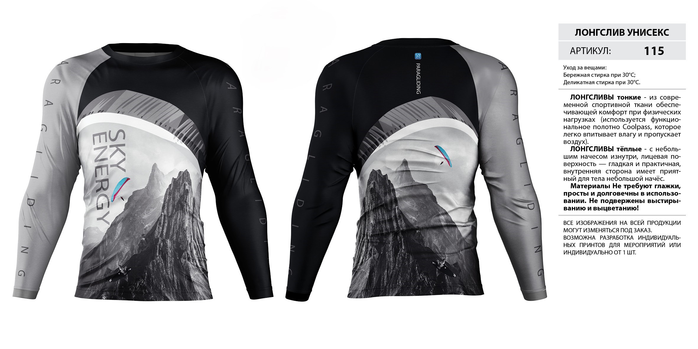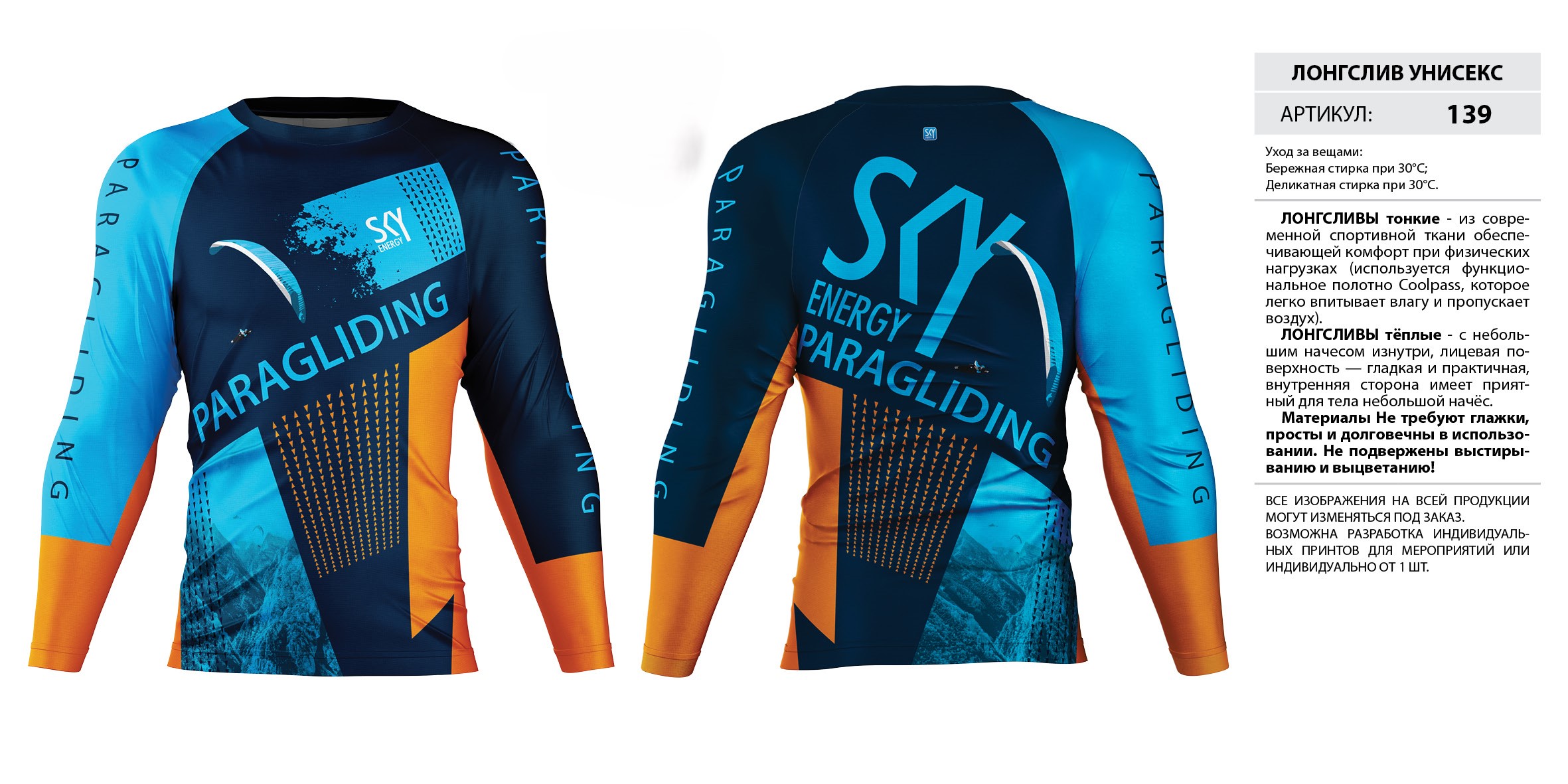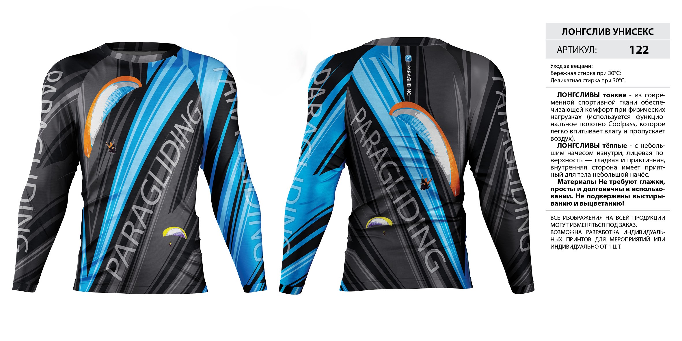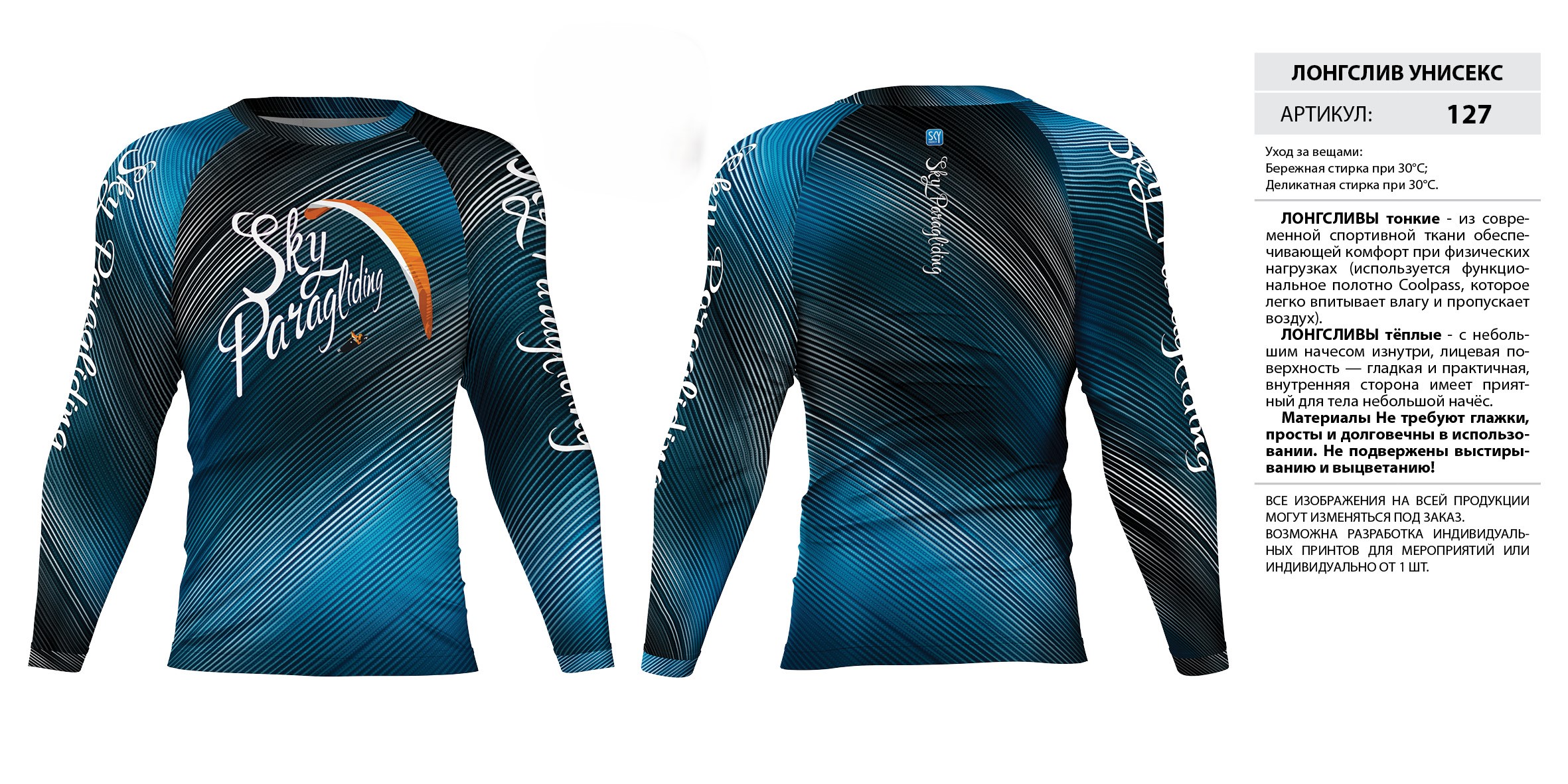 ЛОНГСЛИВЫ тонкие — из современной спортивной ткани обеспечивающей комфорт при физических нагрузках (используется функциональное полотно Coolpass, которое легко впитывает влагу и пропускает воздух).