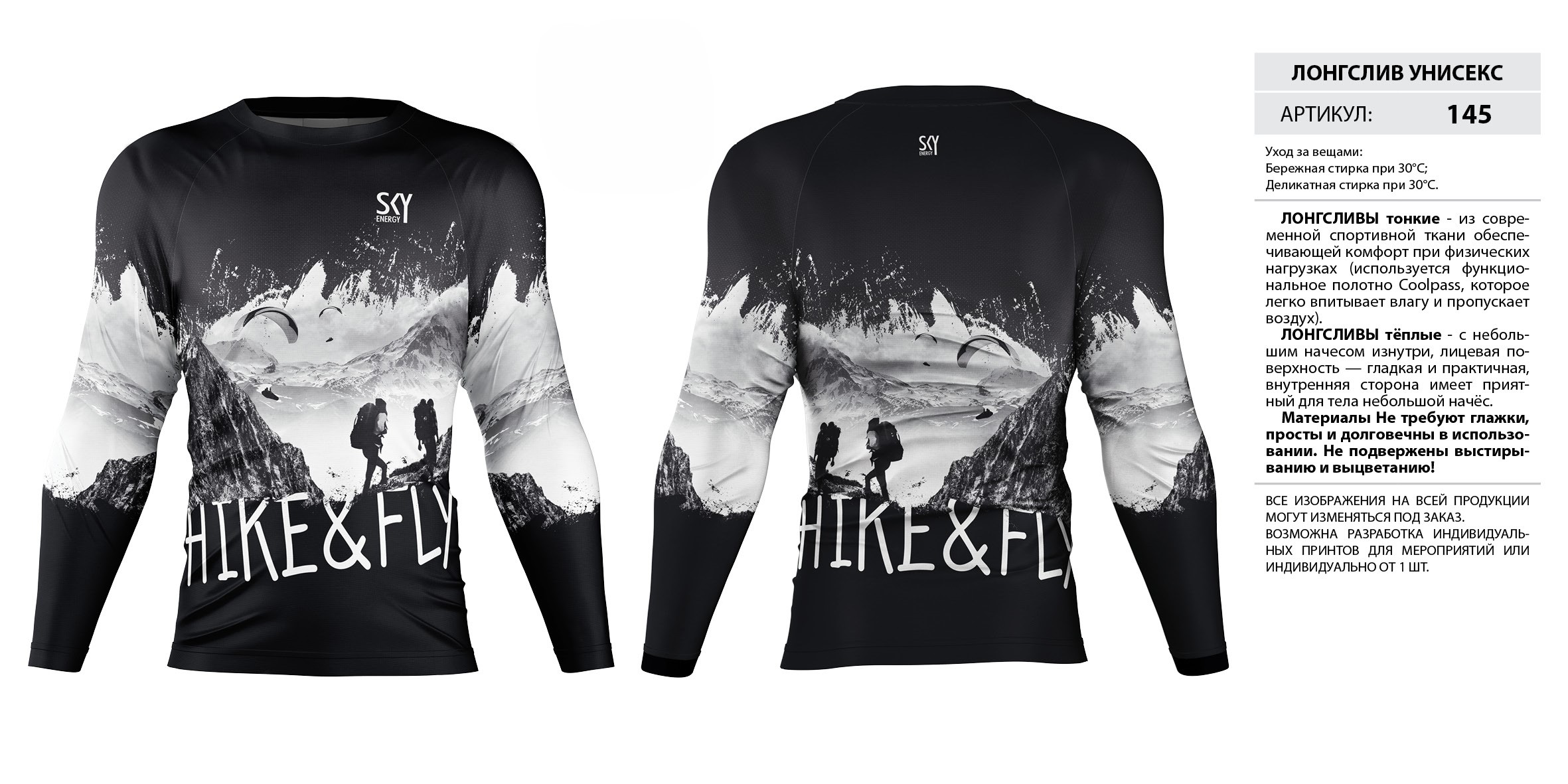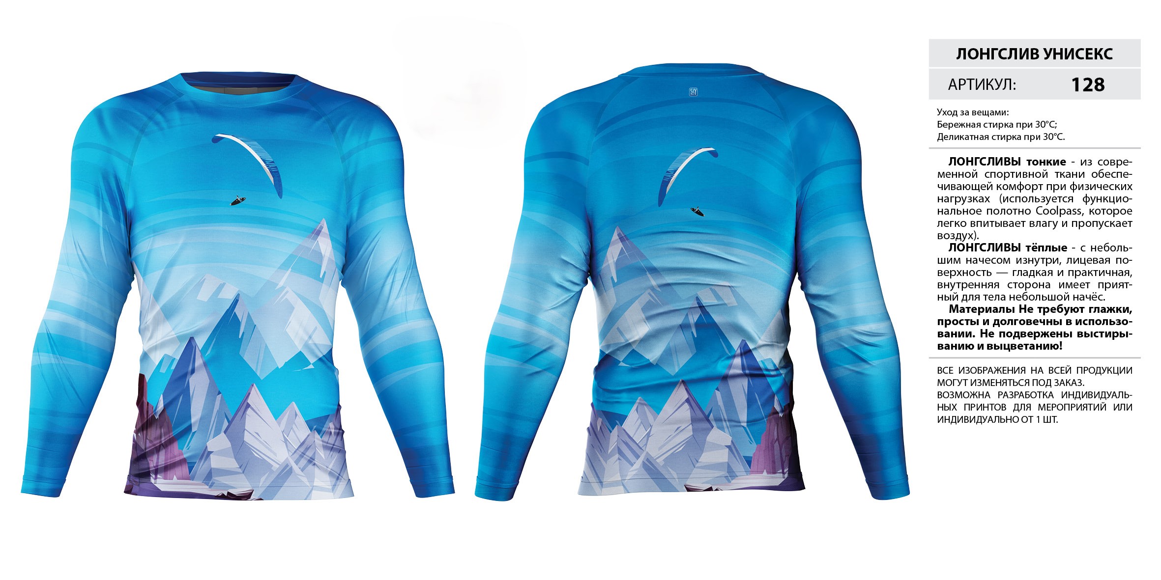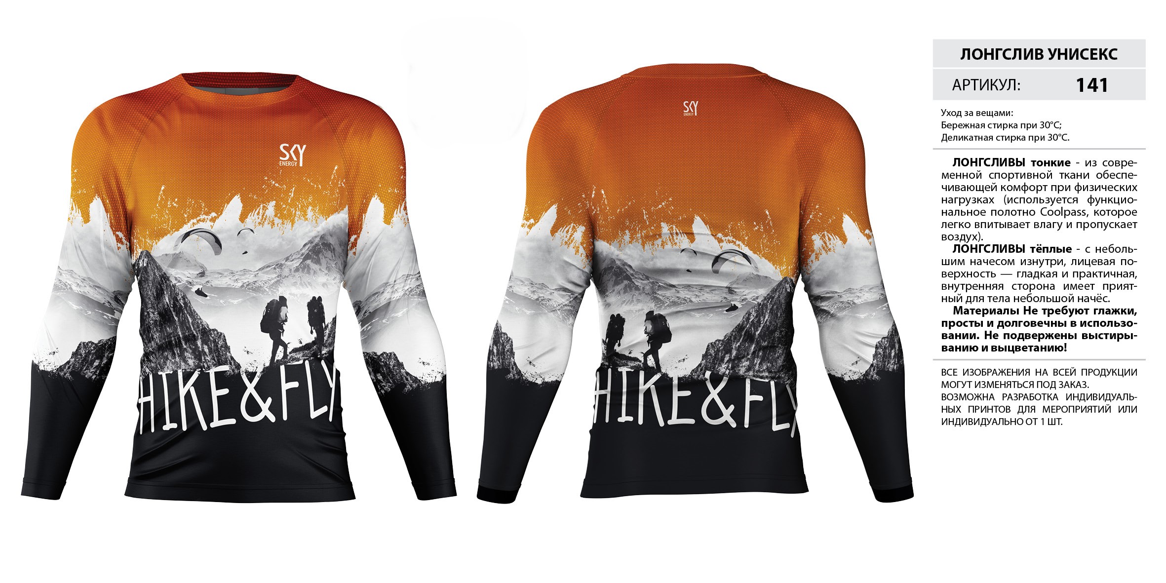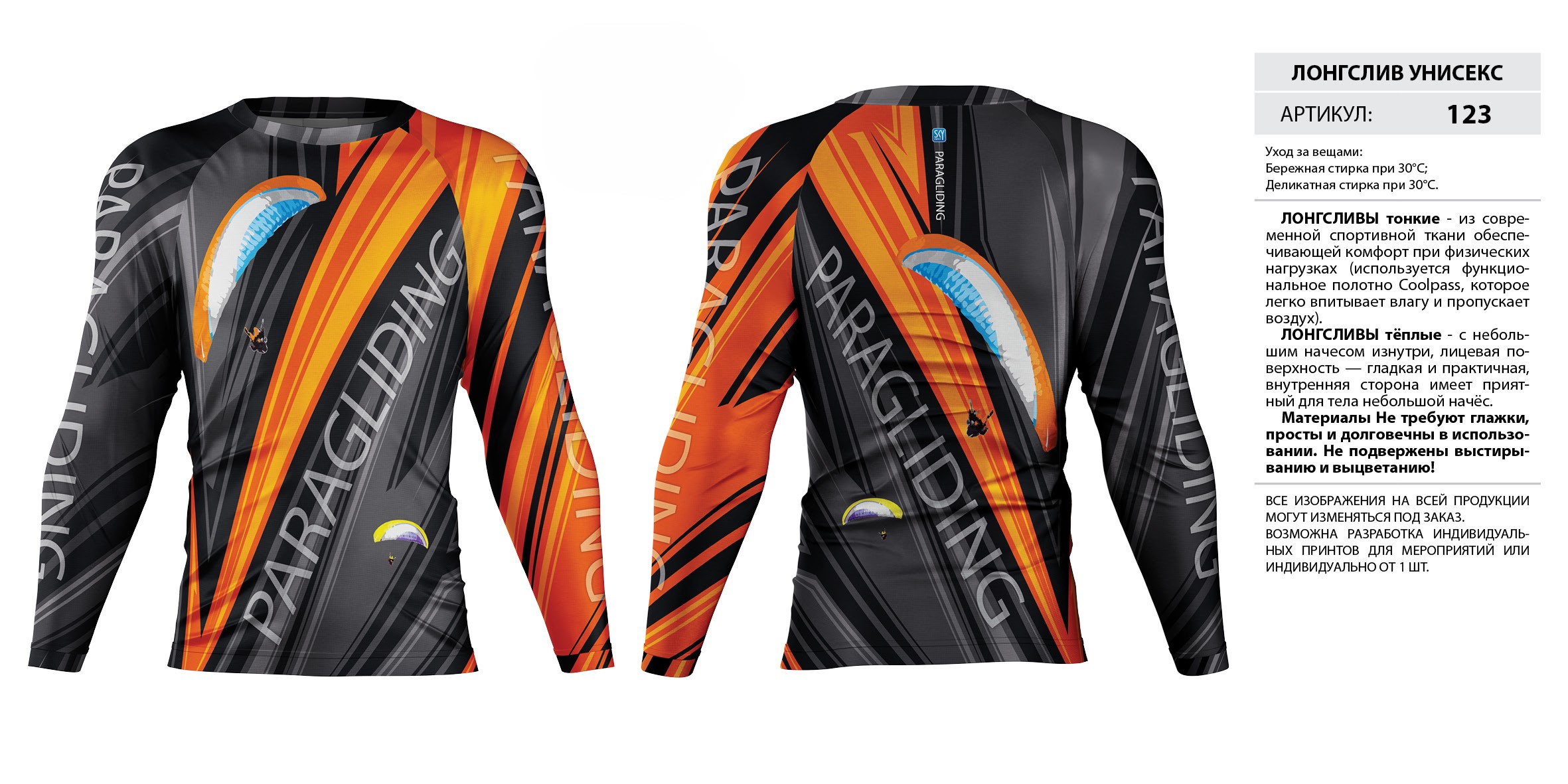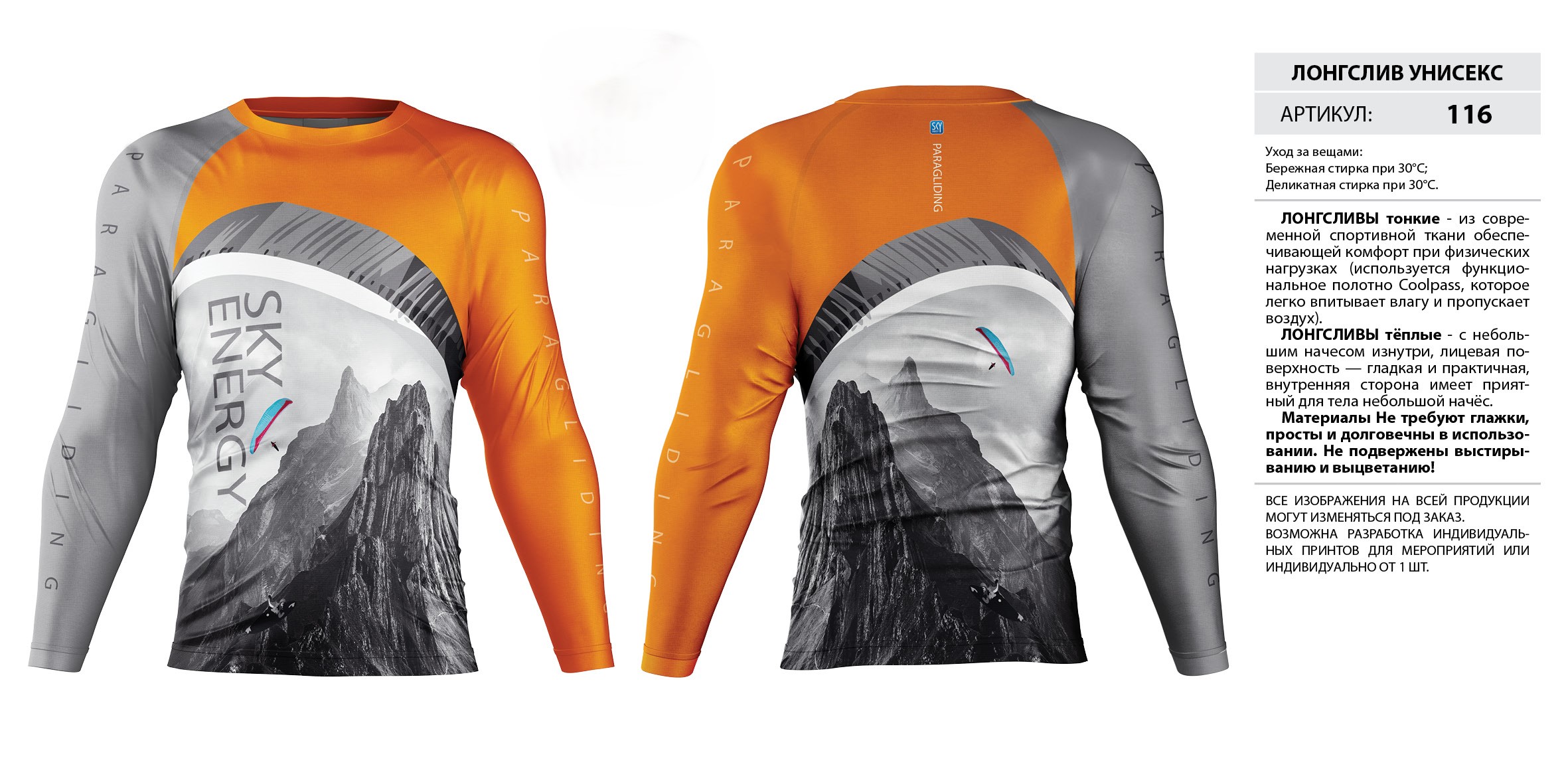 ЛОНГСЛИВЫ тонкие — из современной спортивной ткани обеспечивающей комфорт при физических нагрузках (используется функциональное полотно Coolpass, которое легко впитывает влагу и пропускает воздух).
