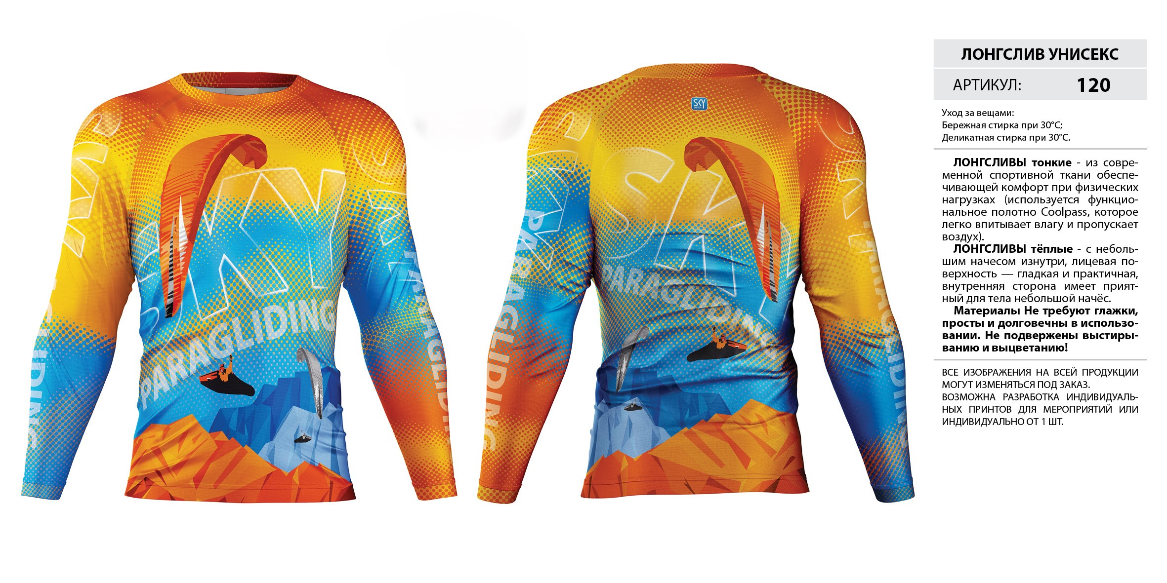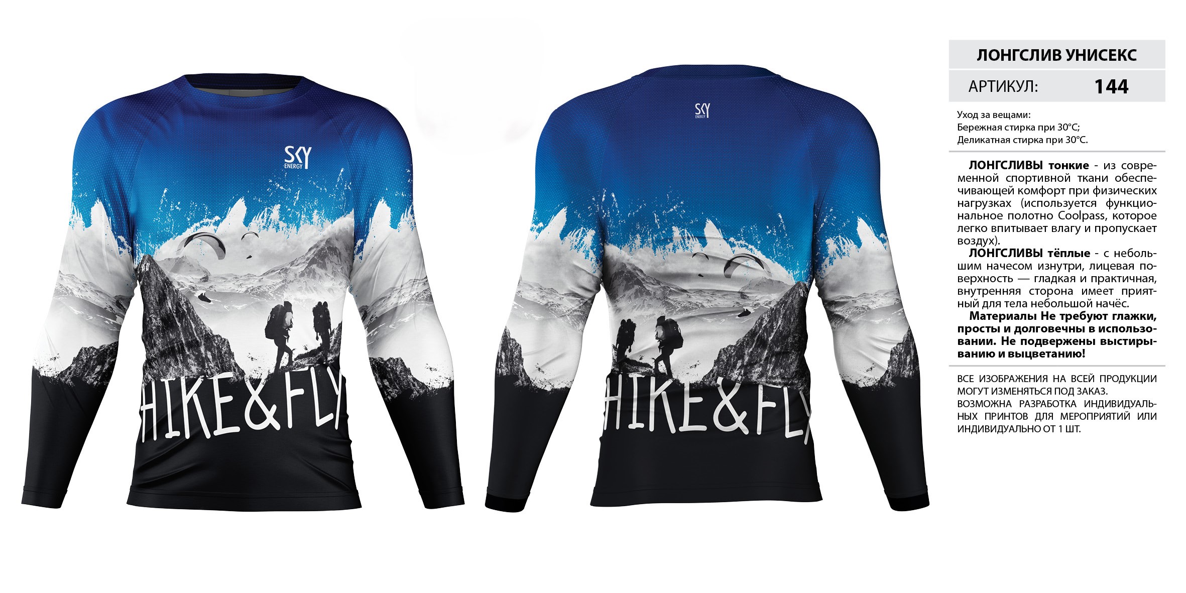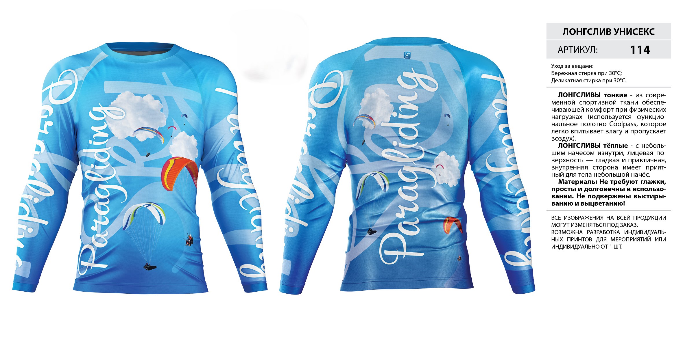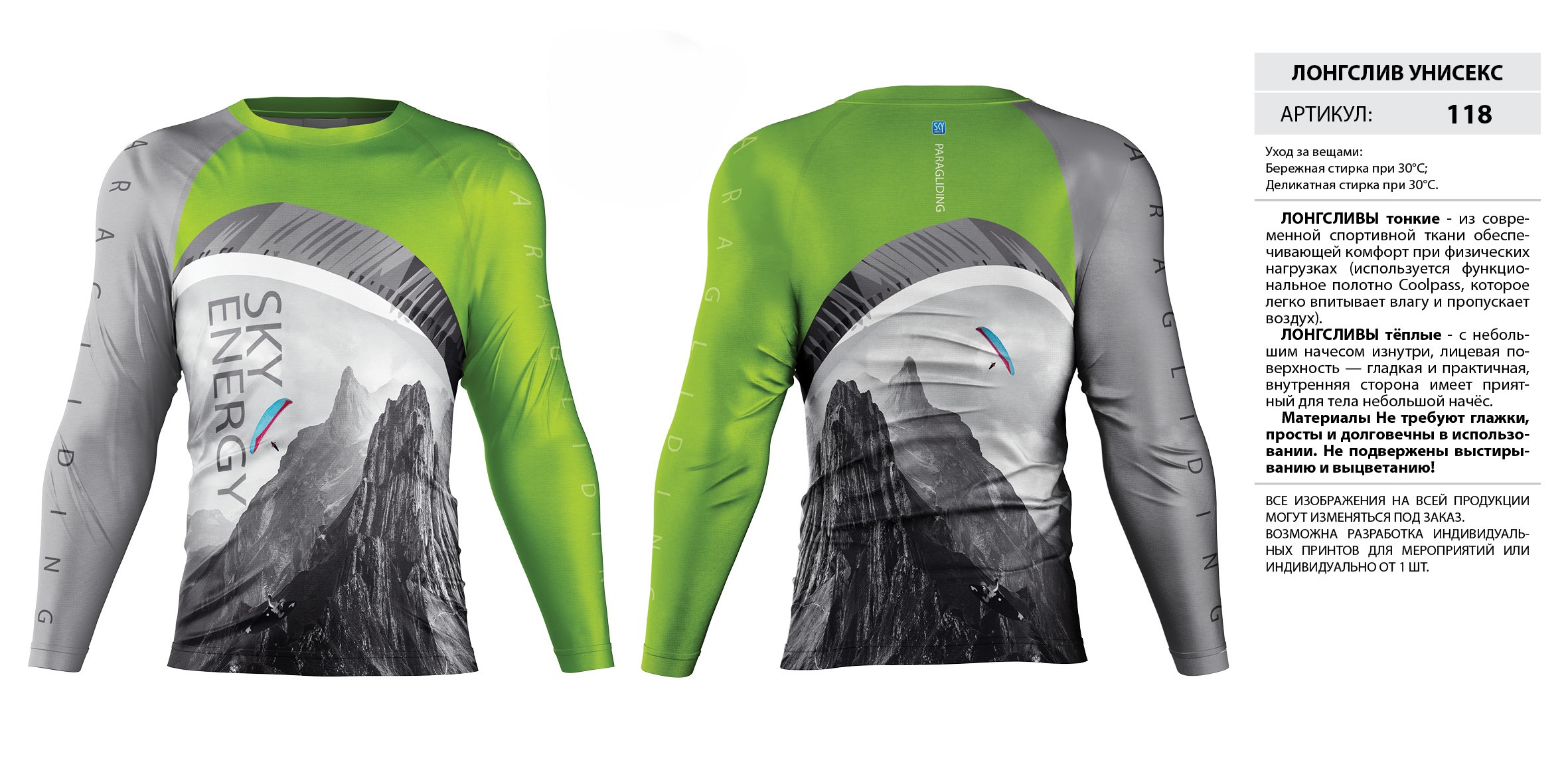 ЛОНГСЛИВЫ тонкие — из современной спортивной ткани обеспечивающей комфорт при физических нагрузках (используется функциональное полотно Coolpass, которое легко впитывает влагу и пропускает воздух).