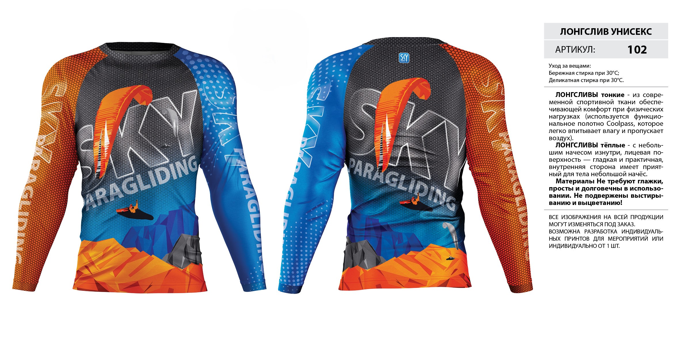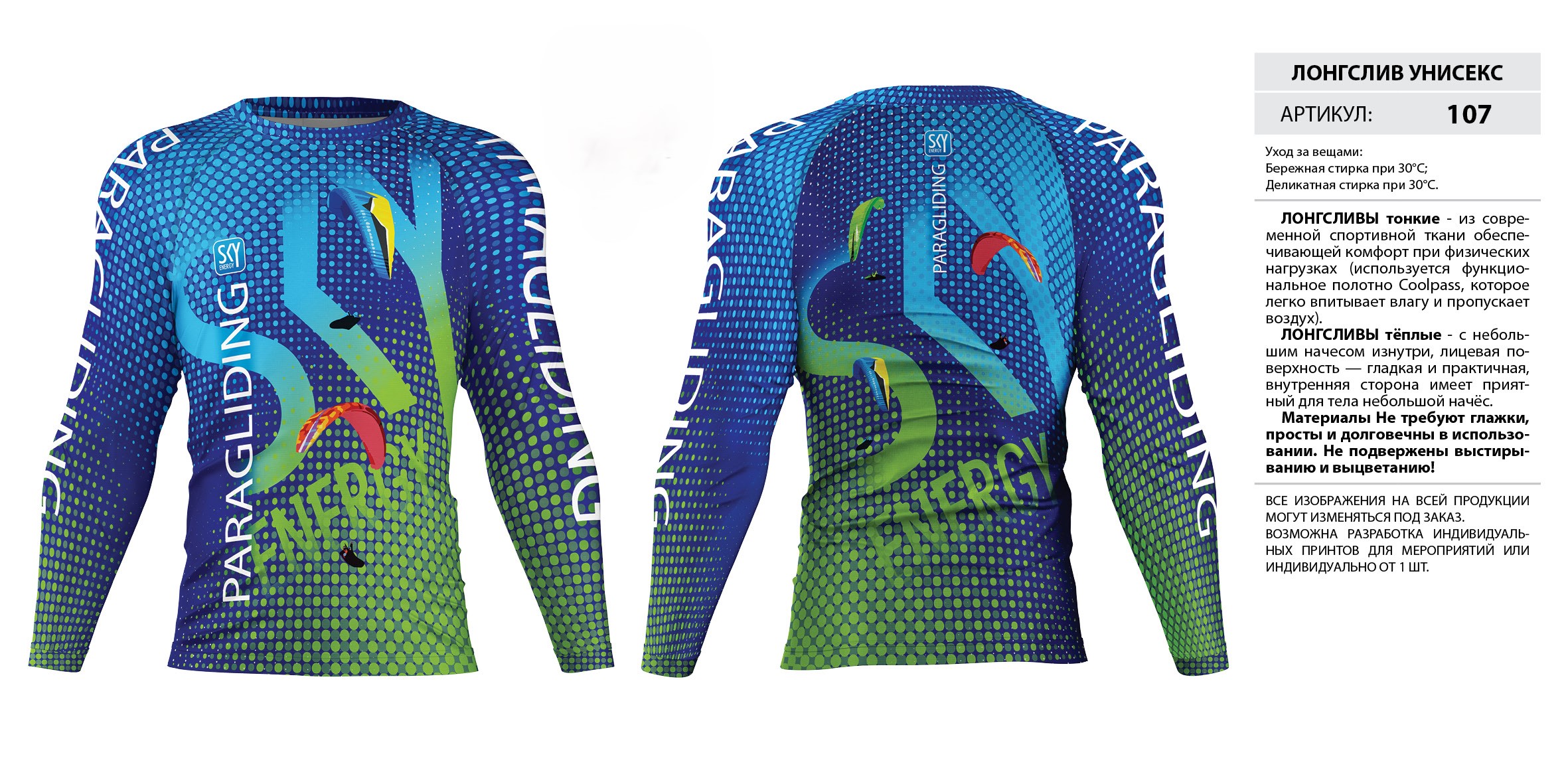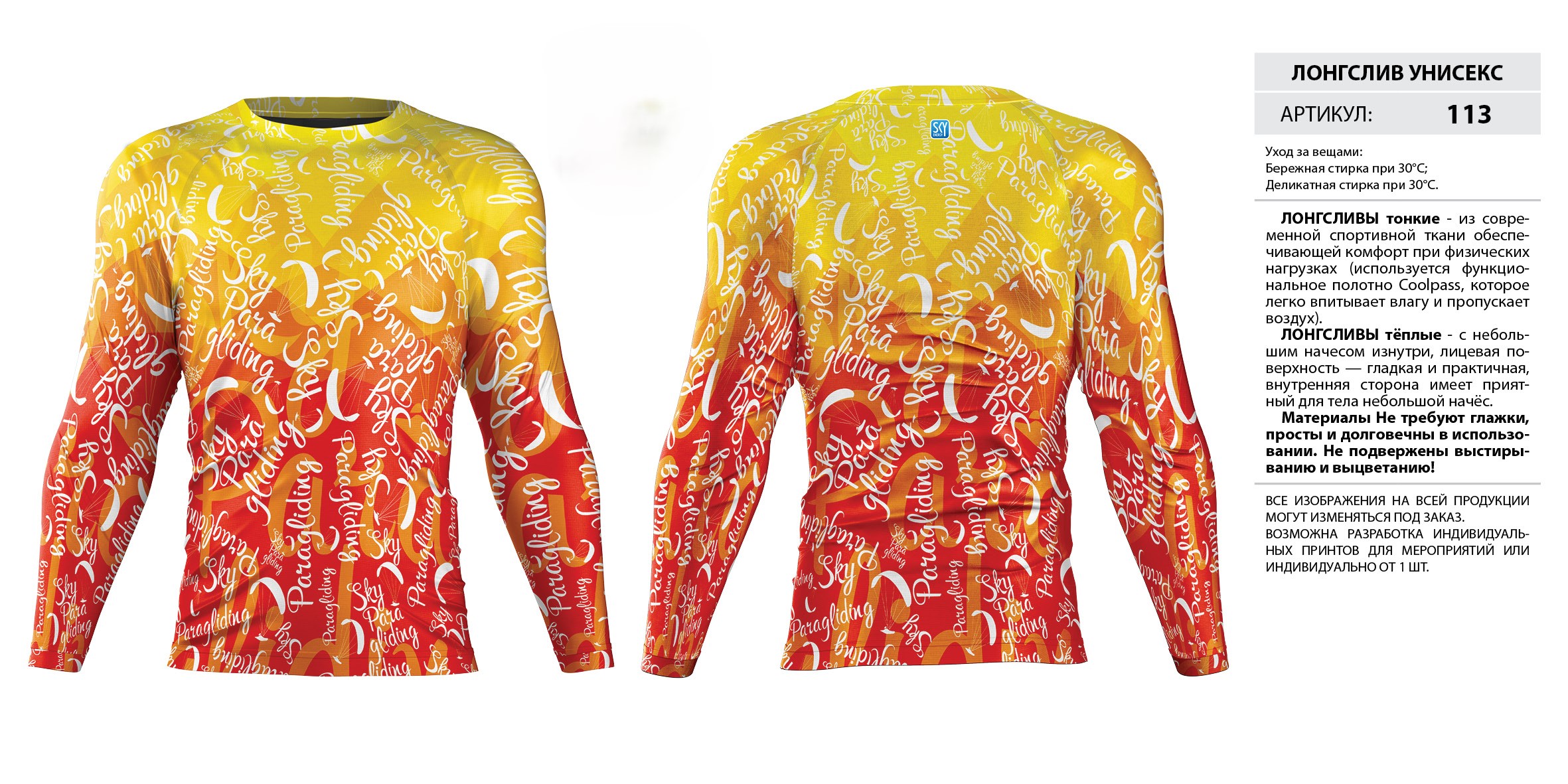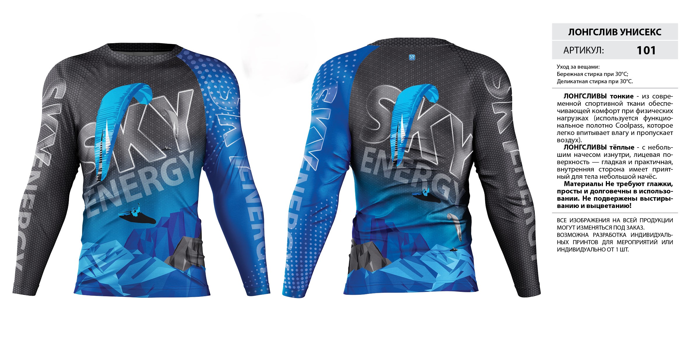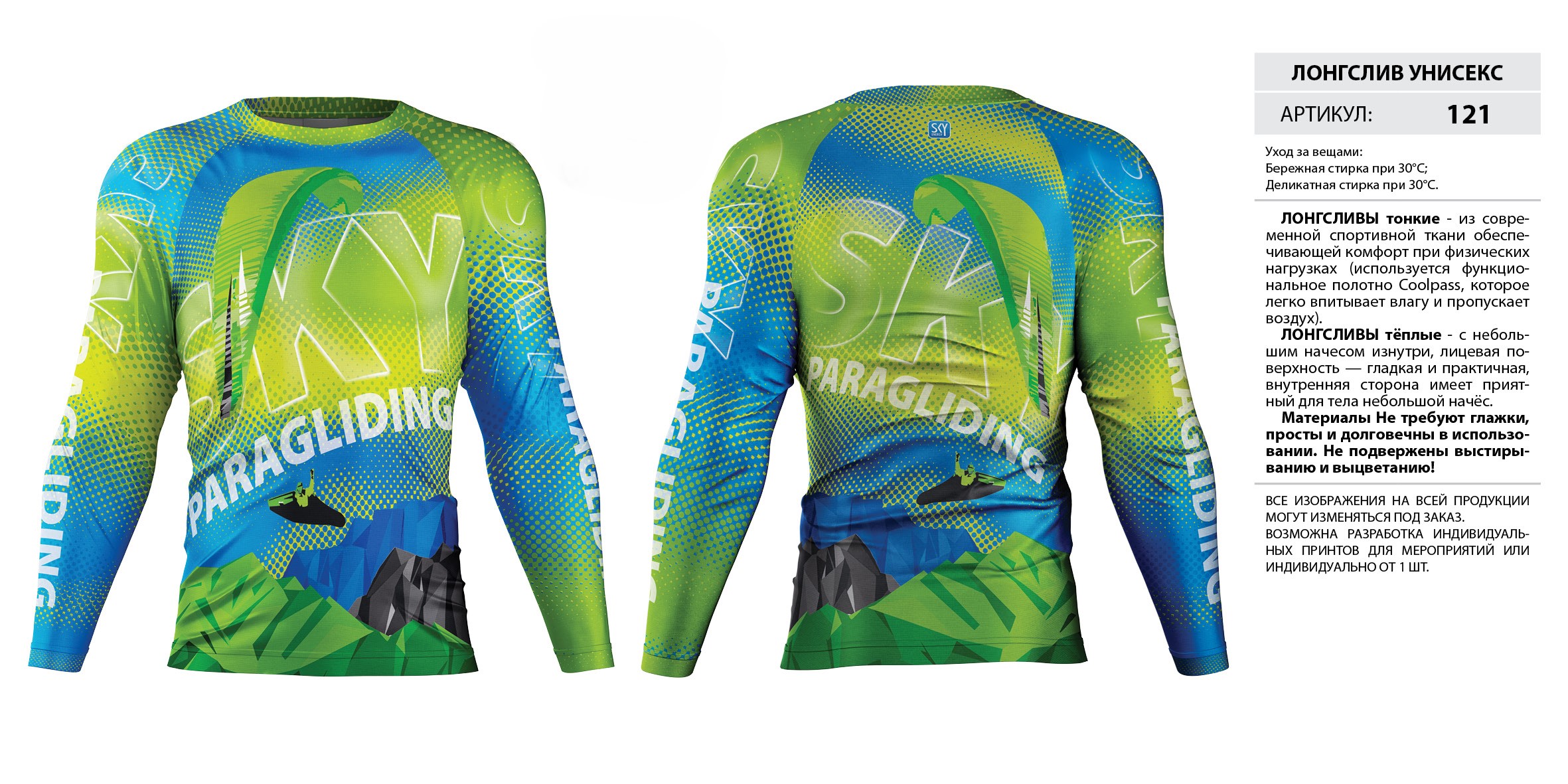 ЛОНГСЛИВЫ тонкие — из современной спортивной ткани обеспечивающей комфорт при физических нагрузках (используется функциональное полотно Coolpass, которое легко впитывает влагу и пропускает воздух).