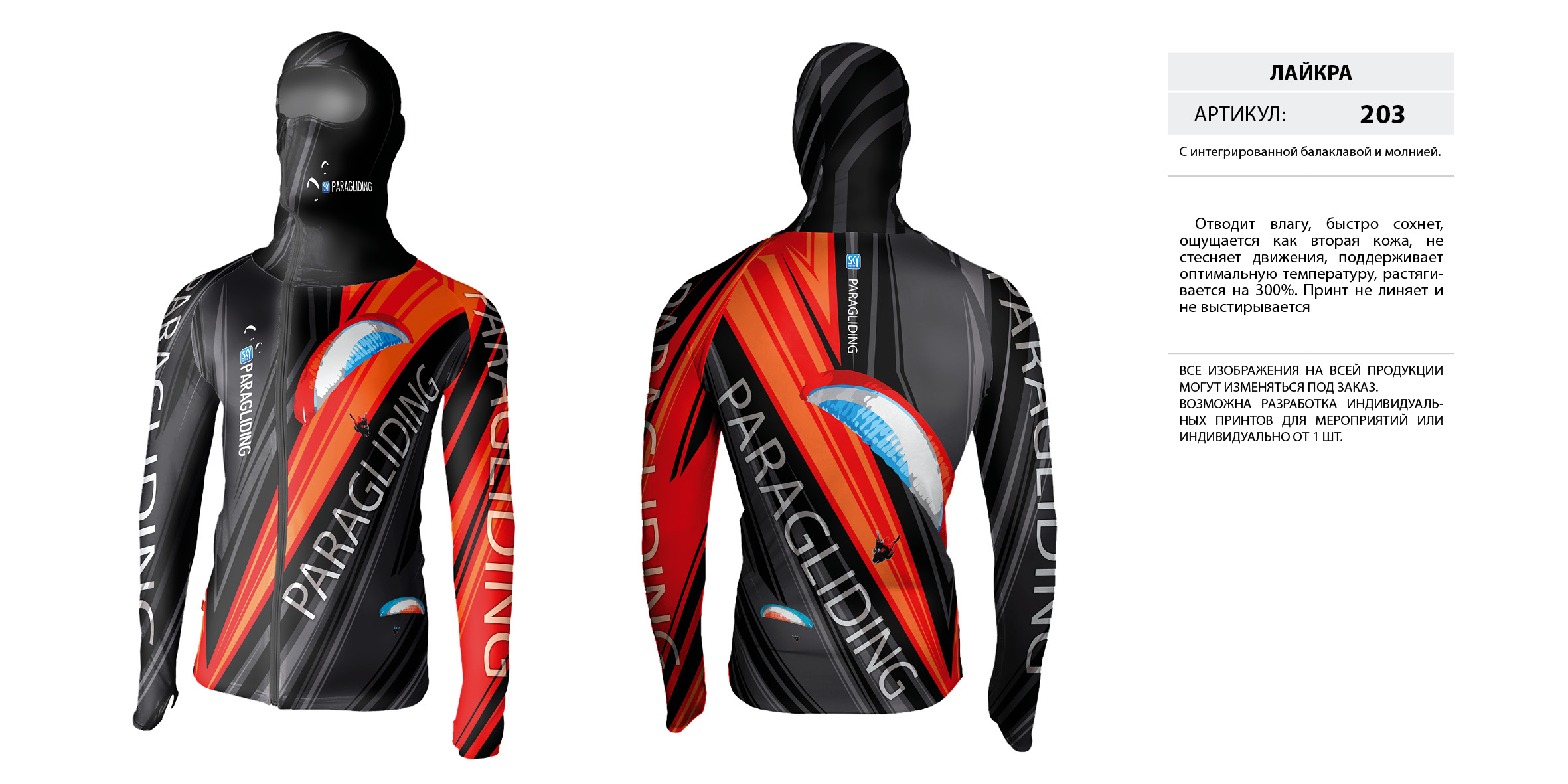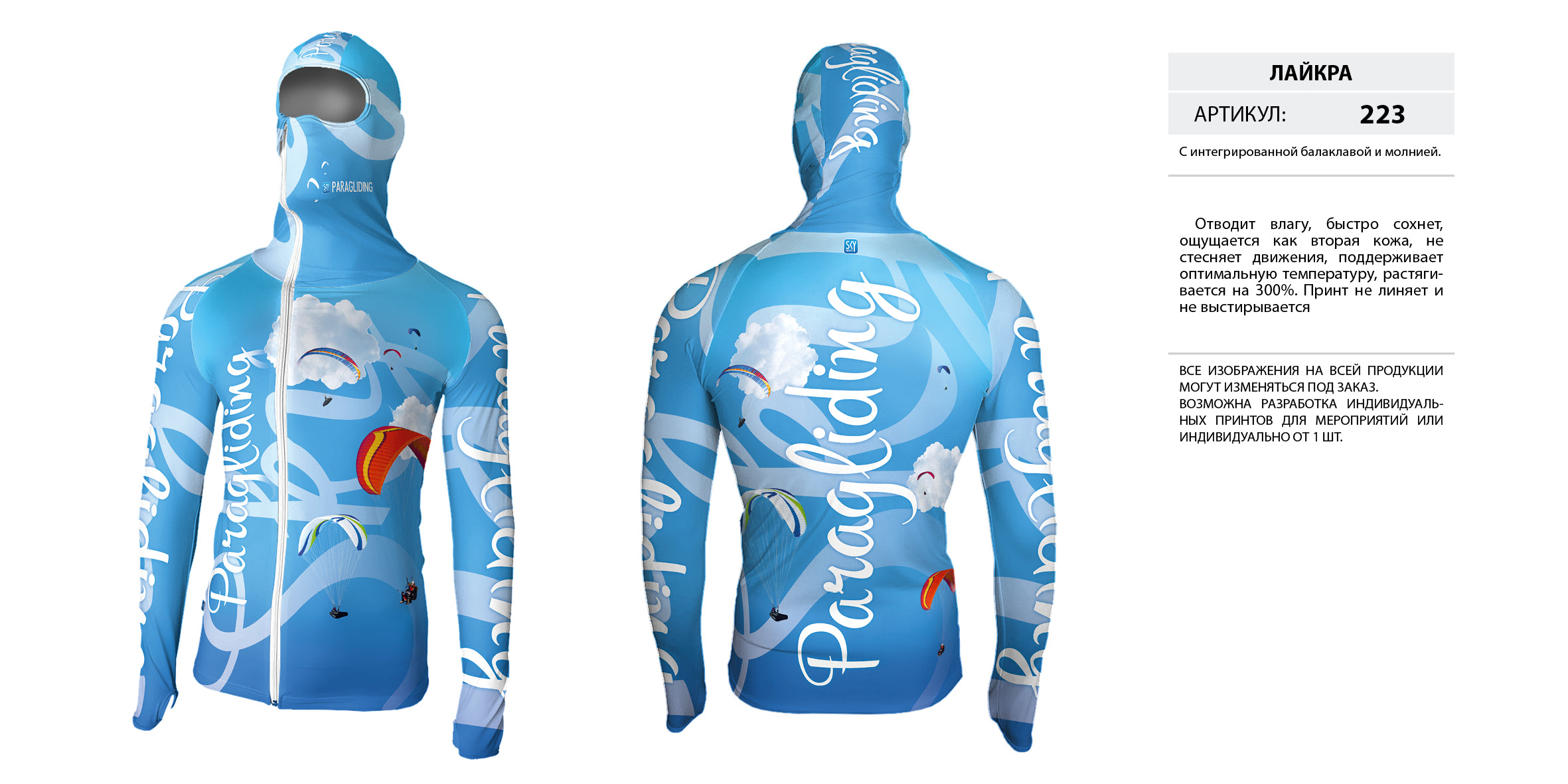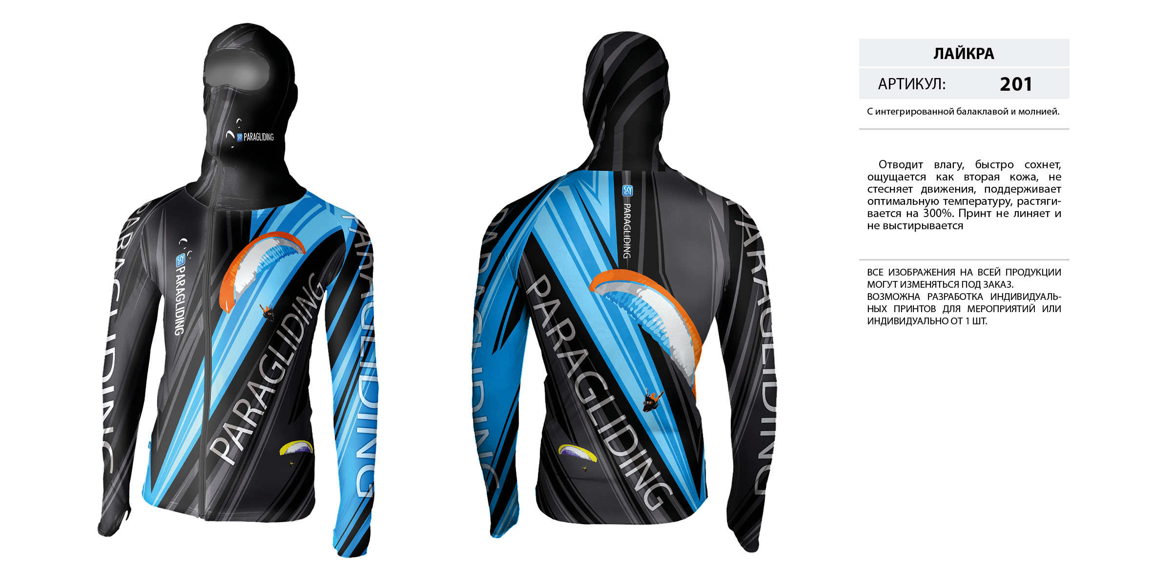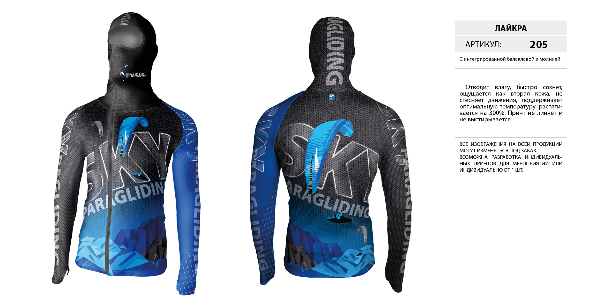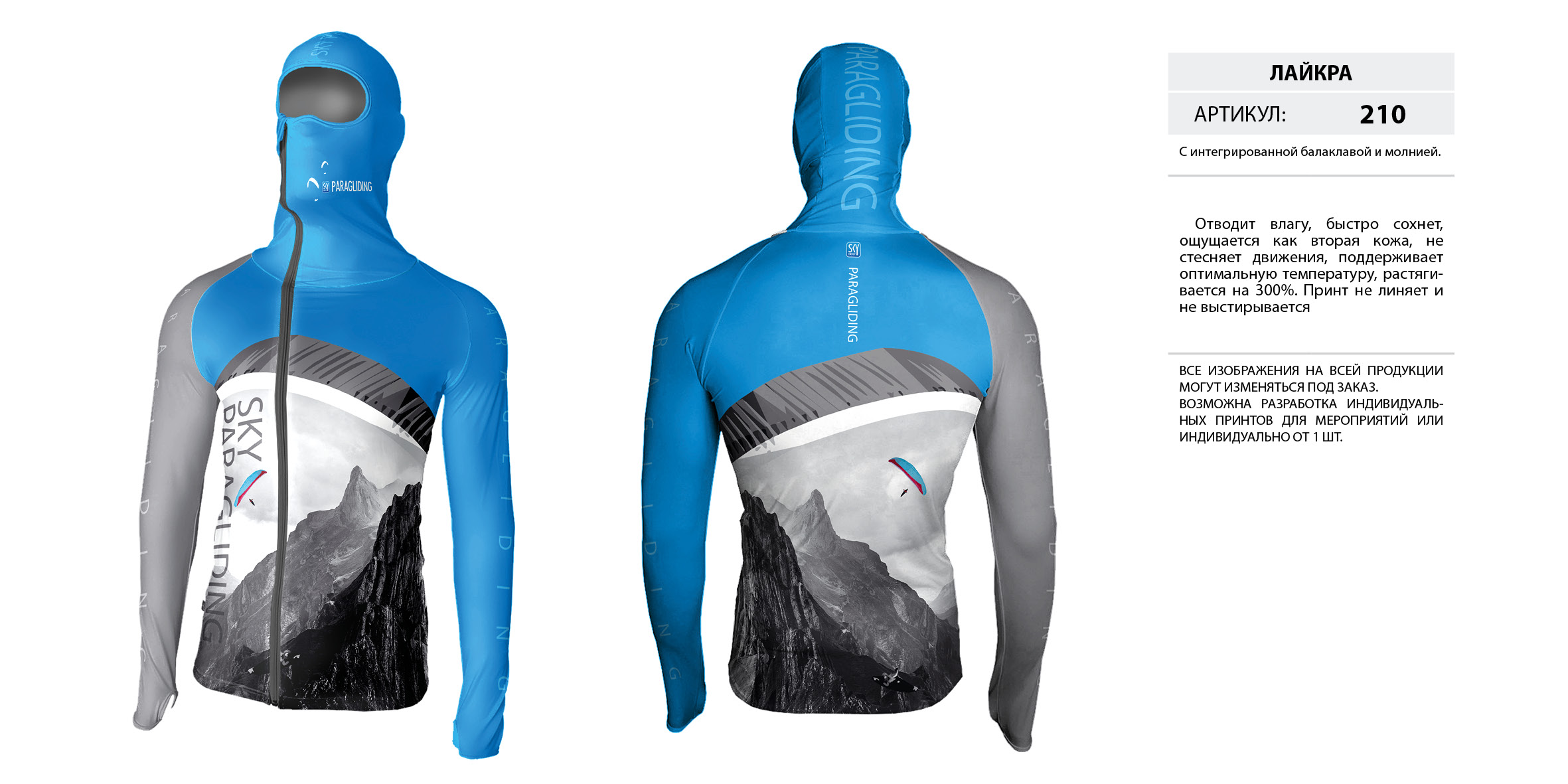 Лайкра (Lycra) с интегрированной балаклавой на молнии.