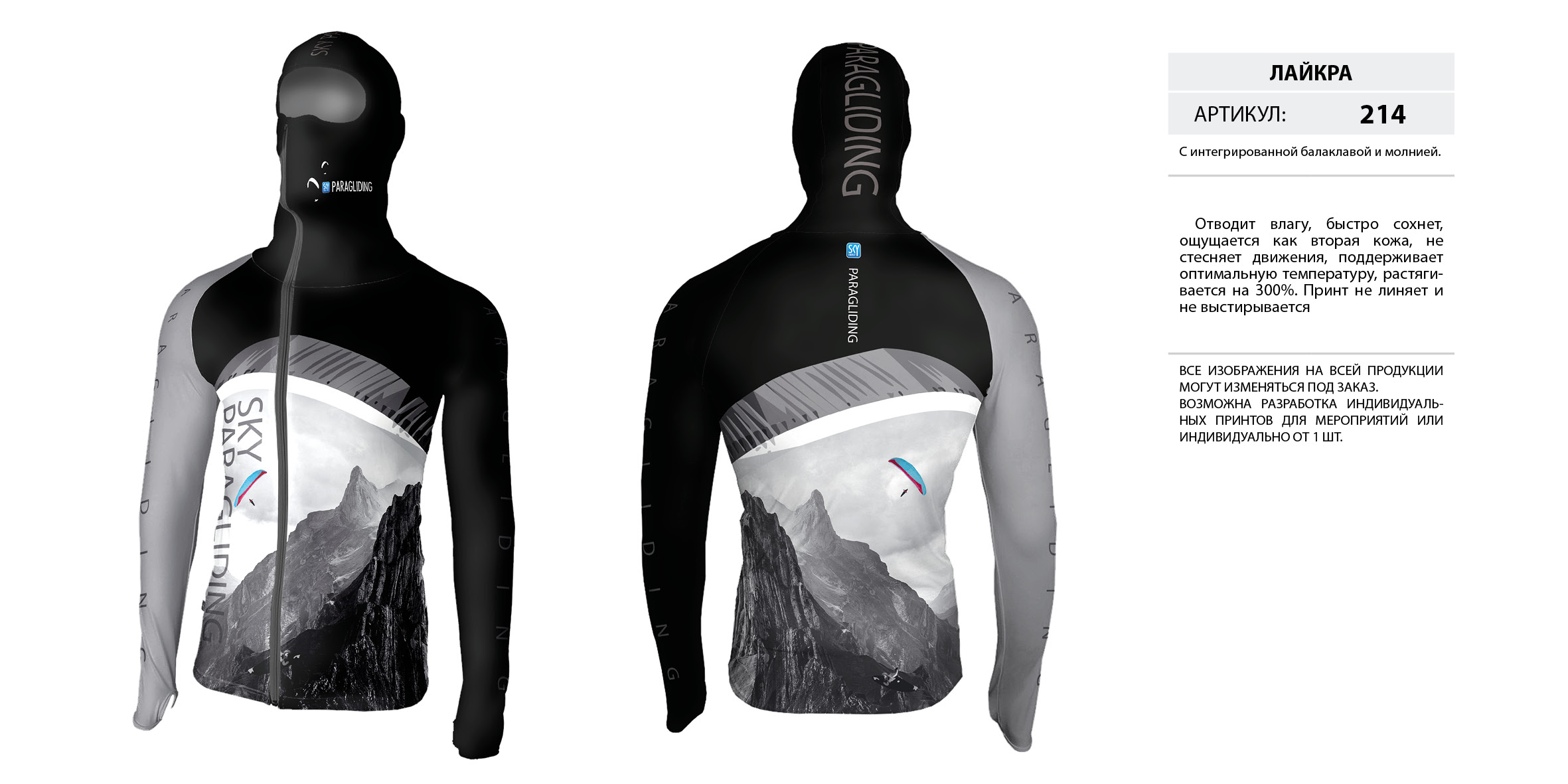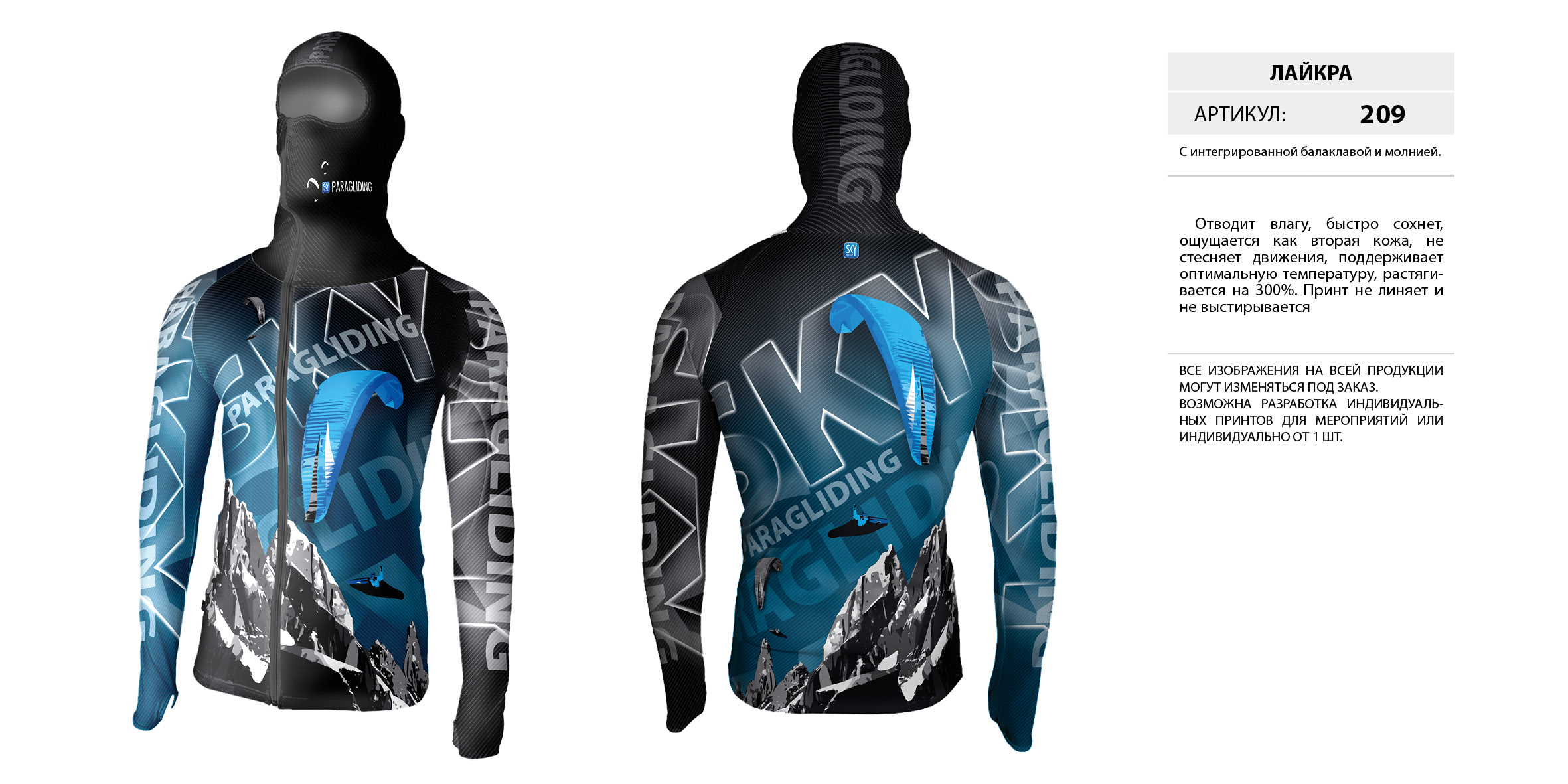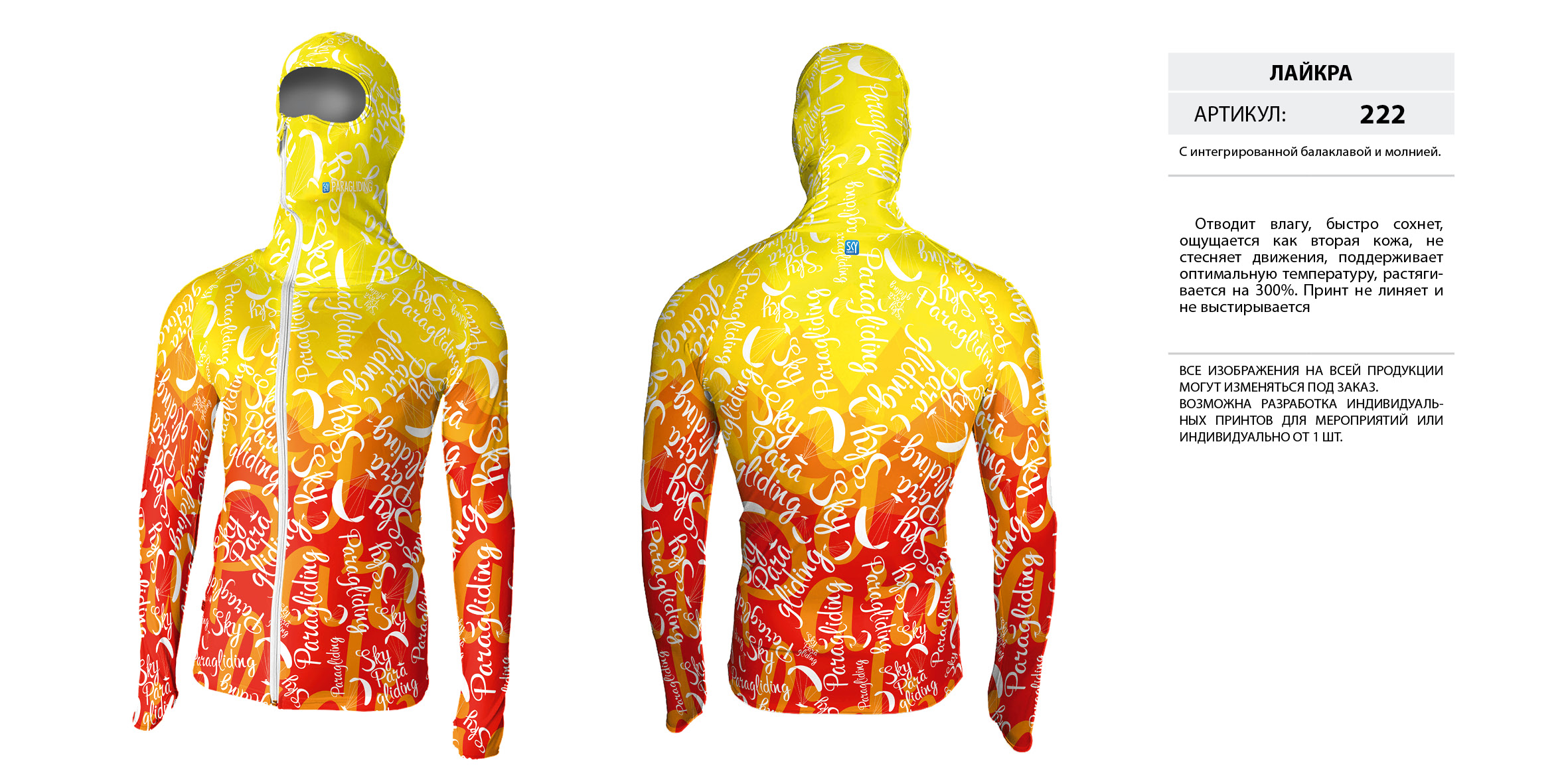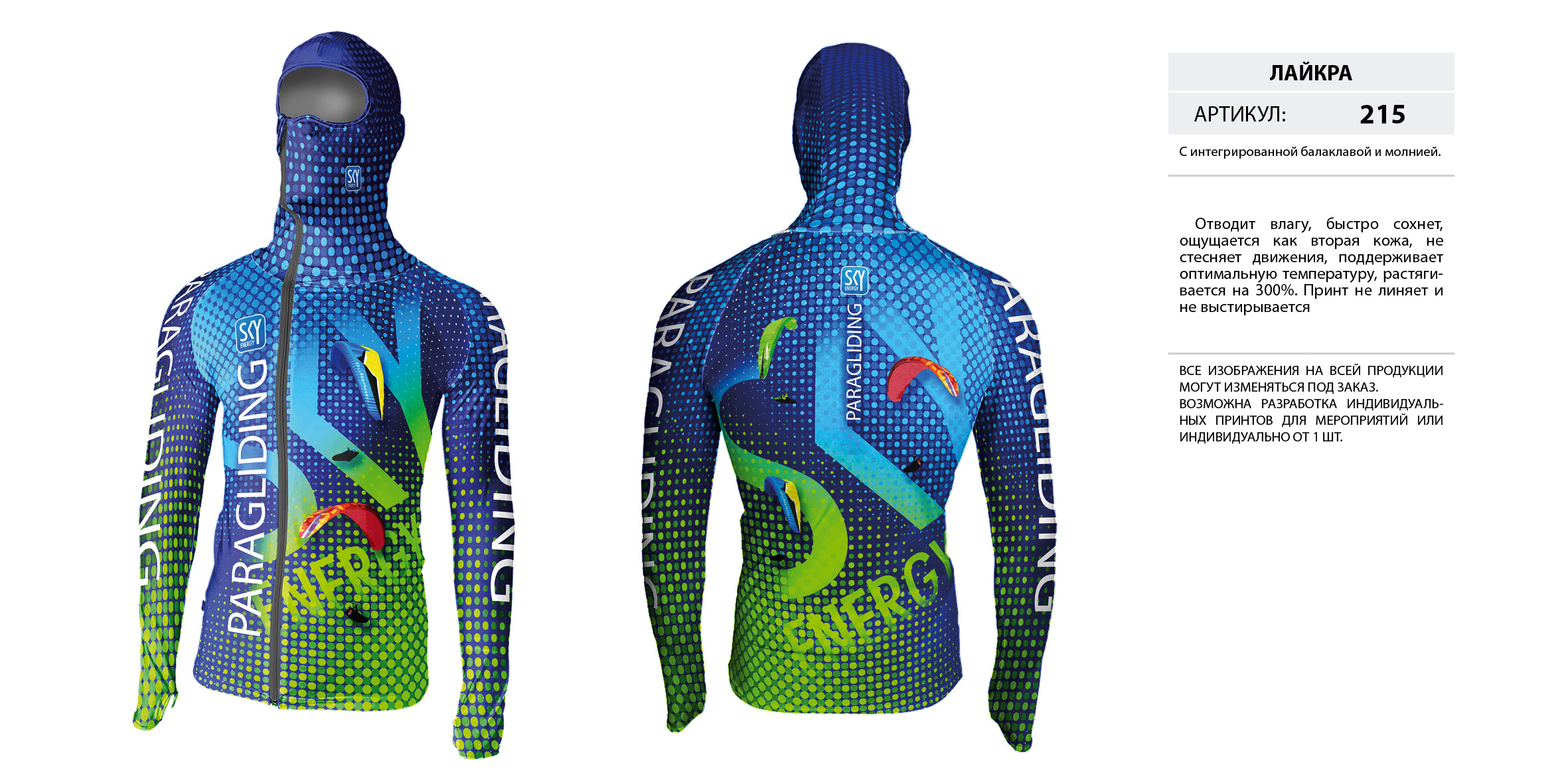 Лайкра (Lycra) с интегрированной балаклавой на молнии.