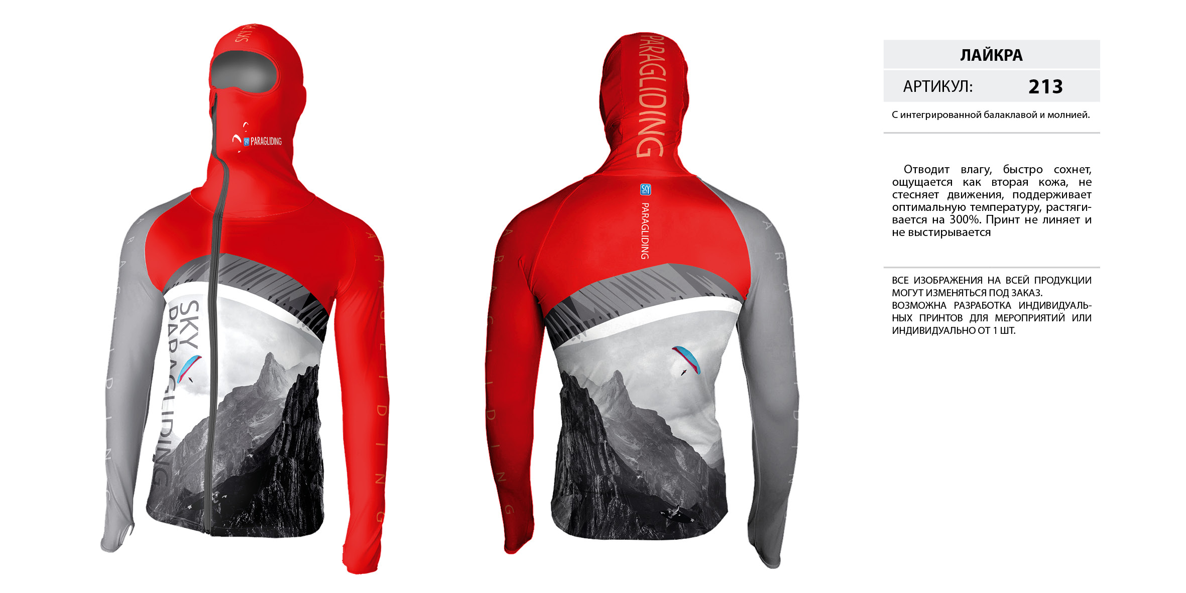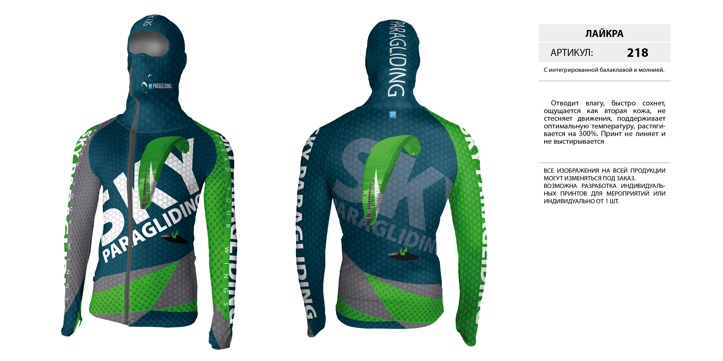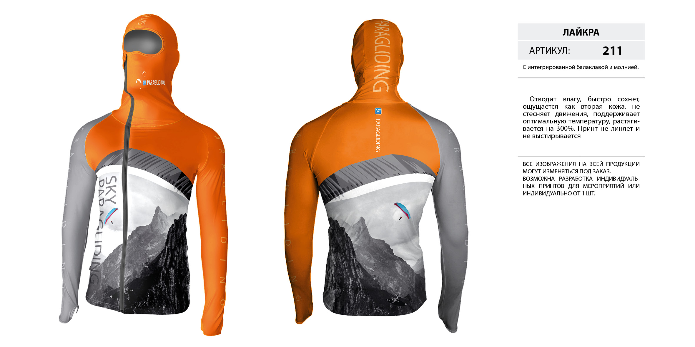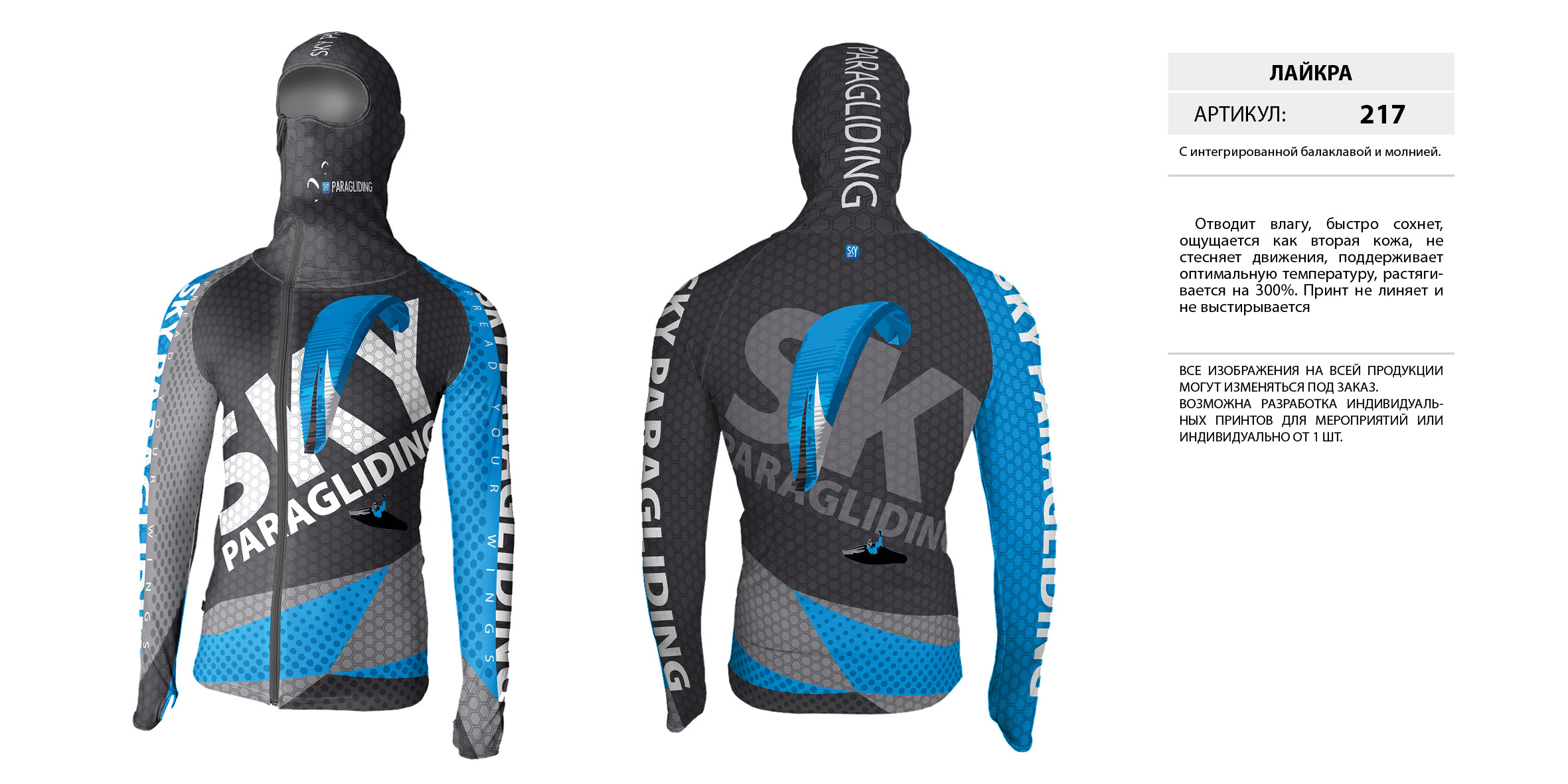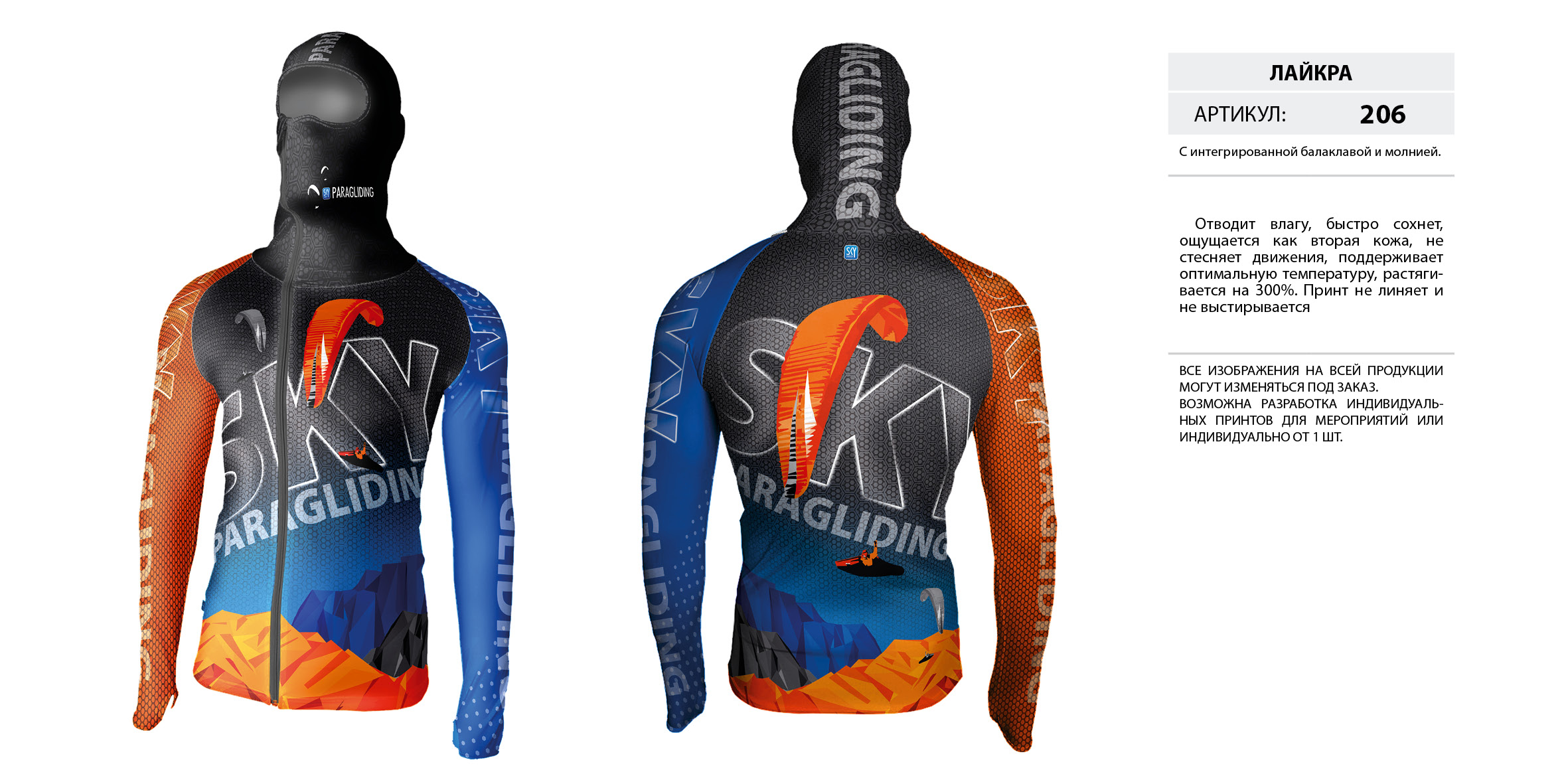 Лайкра (Lycra) с интегрированной балаклавой на молнии.