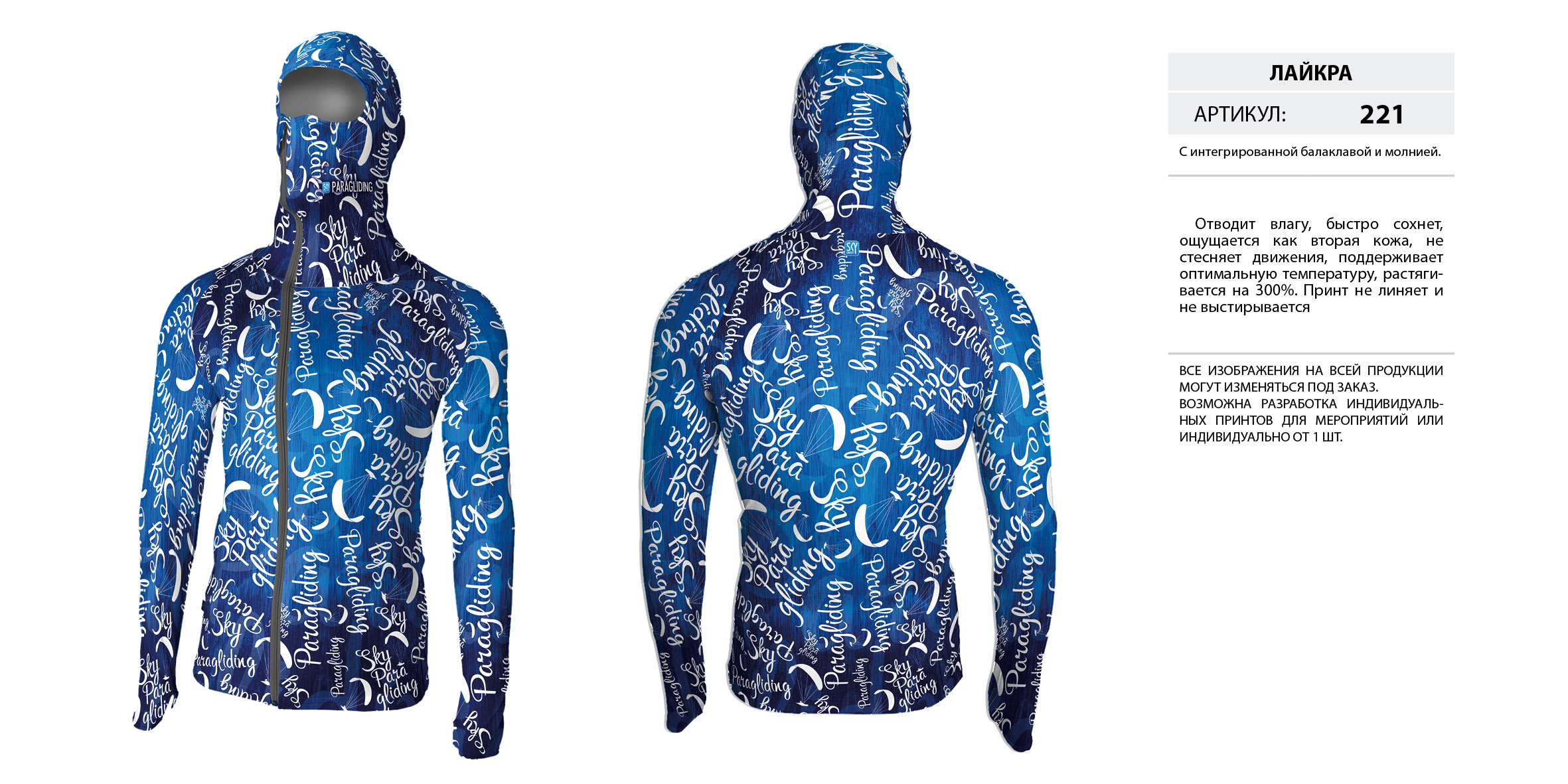 Можно заказать любой дизайн не только на майке, но и на лонгсливе (с капюшоном и без). Очень актуально в жаркие солнечные дни как защита от солнца.