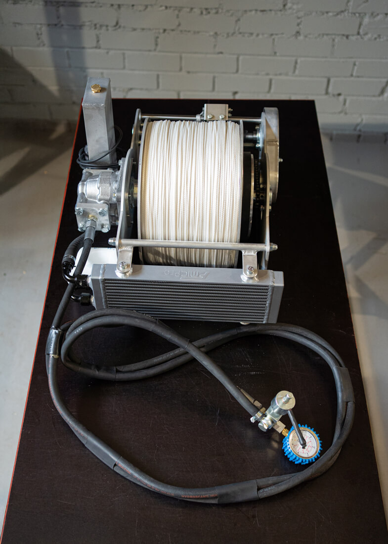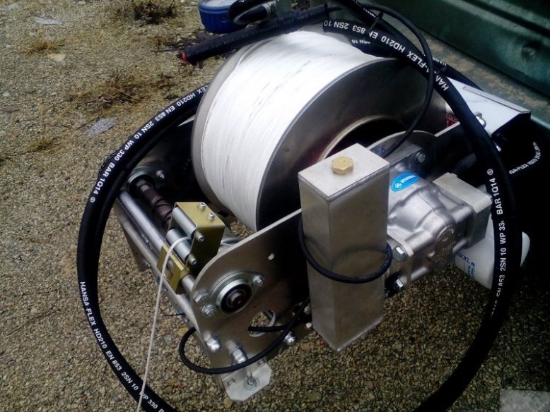 Натяжение троса регулируется гидравлическим давлением, где гидронасос выполняет функцию тормоза, обеспечивая плавное и контролируемое натяжение.