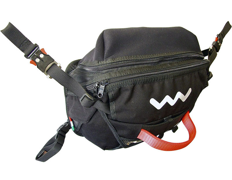 Фронтальный контейнер для запасного парашюта с панелью под приборы, производство Woody Valley. Кокпит вешается на основные карабины с помощью быстросъемных пряжек и имеет ремни оттяжки для закрепления в нижней части для повышения устойчивости положения. Контейнер с регулируемым объемом для адаптации к большинству запасных парашютов. Выход уздечки фала запаски на правую или левую стороны закрыт лепестком из ткани Cordura. Регулируемая по глубине для хорошей видимости инструмента. Панель для приборов покрыта ворсистым материалом для крепления Velcro и снабжена контровочными петлями для безопасности ваших приборов во время полета. Прочная неопреновая ткань закрывает и защищает ваши инструменты во время транспортировки.  Оборудован удобной ручкой для переноски. Внутри кокпита имеется пространство, не занятое аварийным парашютом, которое можно использовать в качестве кармана для различного материала, доступно на молнии, расположенной под приборной панелью.