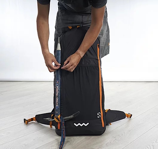 Этот рюкзак спроектирован так, чтобы обеспечить максимальную компактность, не теряя драгоценного места и комфорта. Доступен в трех размерах: 40, 55 и 70. Эта новая концепция рюкзака позволяет широко регулировать объем. Рюкзак 40 – самый маленький/легкий и не оснащен двумя боковыми компрессионными молниями (которые есть в двух других размерах).
