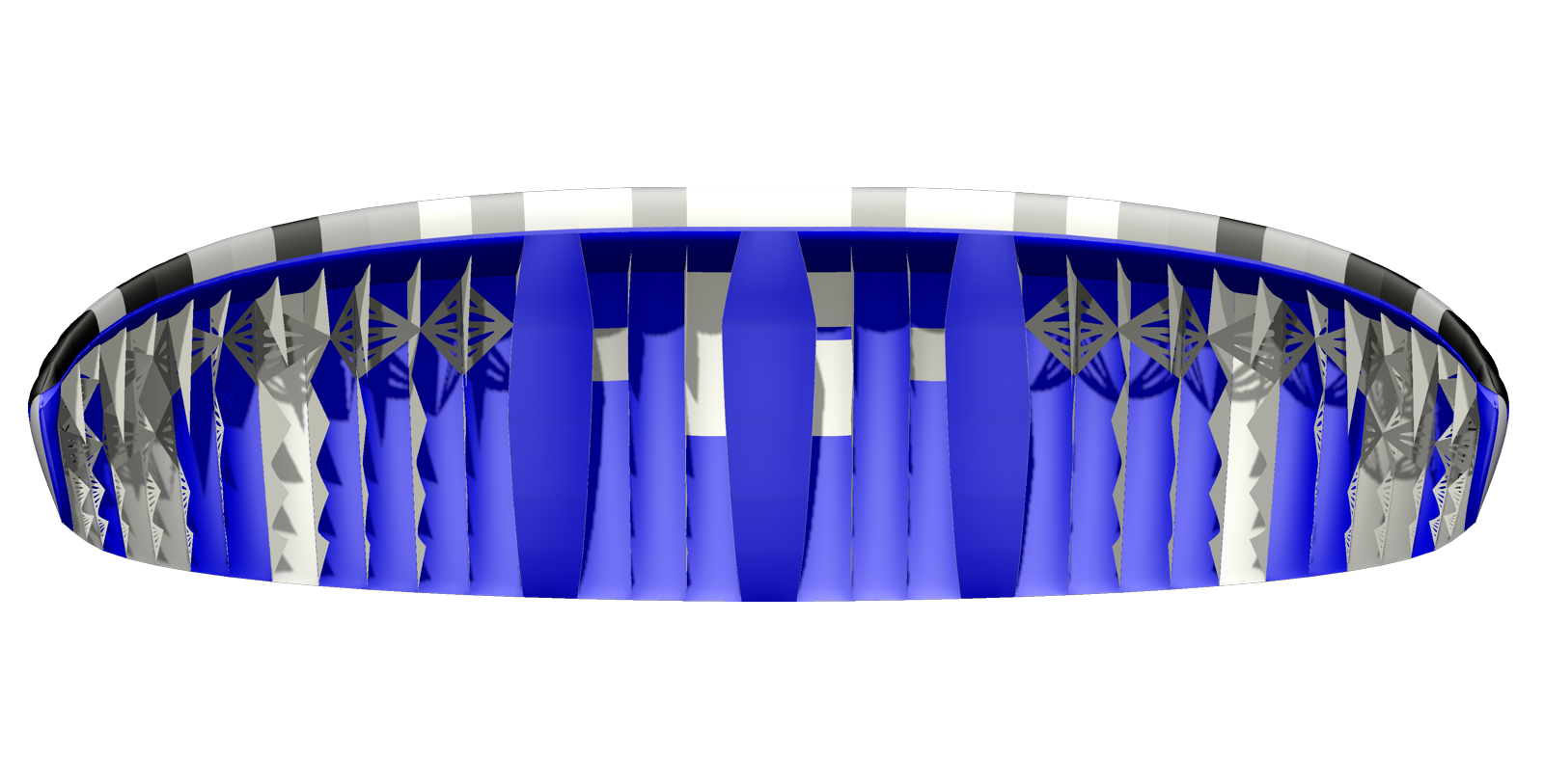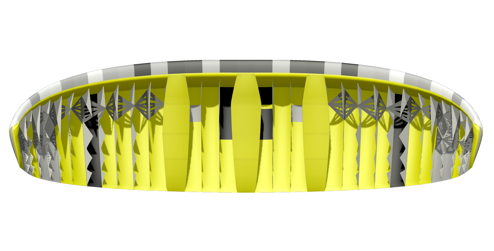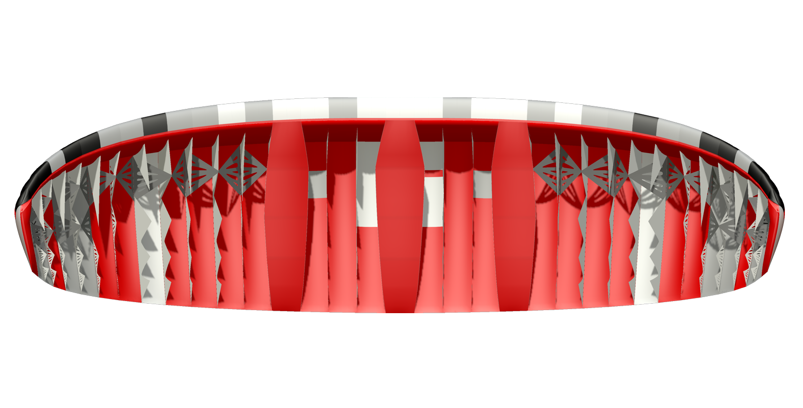 Модель и ее характеристики оказались настолько многообещающими, что в конце 2016 года был запущен проект V-King. Благодаря оптимальному количеству ячеек и сочетанию V-образных опор и подвесных стабилизаторов удалось сохранить минимальное количество линий при относительно высокой нагрузке на крыло. Мы уделили много внимания созданию оптимальной формы купола. Самозаполняющаяся закрытая трубка на передней кромке эффективно повышает жесткость, что особенно важно в конструкциях с небольшим количеством ячеек. Центральные каналы, проходящие вдоль хорды, выполняют аналогичную функцию.