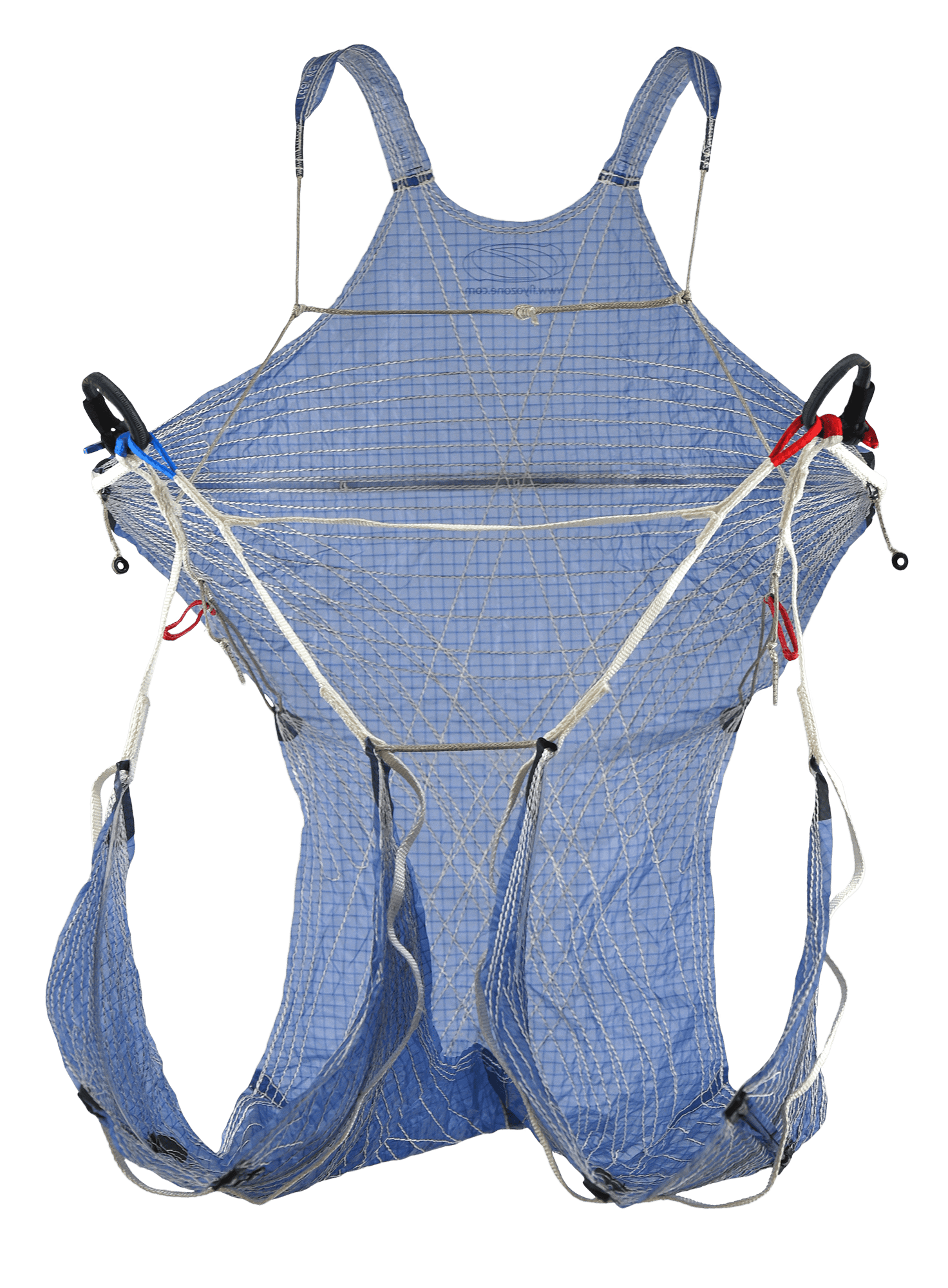 Оптимизированная структура из нитей Dyneema образует каркас подвесной системы, встроенной в сиденье из парусиновой ткани. Усиления из углеродного волокна обеспечивают поддержку ног, а ширина плечевых ремней регулируется для большего комфорта во время полета. По сравнению с первоначальной моделью конструкция из углеродного волокна была переработана для повышения прочности и удобства использования, особенно при взлете.
